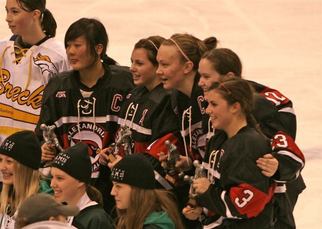 Danielle was named to the all-tournament team, of course, along with Abby, Del, Michelle, and Ashley Holmes. And then a real bonus occurred when Ashley was also named recipient of the Herb Brooks Award – congratulations Ashley! Abby won that award last year, so Alex pulled off a rare double! After watching them for 5 years, we’re really going to miss the seniors next season – but we wish them all well as they move on to college.