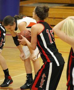 So far we have featured the guards, a/k/a, the backcourt, from the girls’ holiday basketball tournament. But the staff photographer is an equal opportunity shutterbug. Here we pay homage to “the bigs,” a/k/a, the frontcourt, as well (one of which is also a close relative of the photographer).