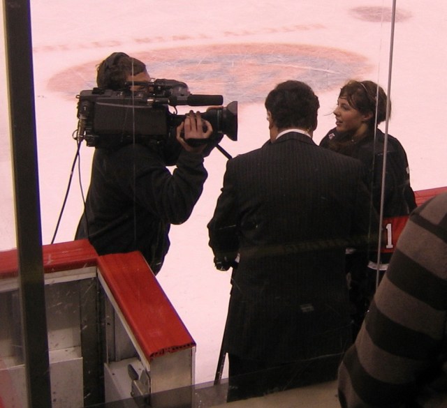 [Vivian, as a Super Fan, is interviewed at the game by Al Schoch, newsradio WMNN]