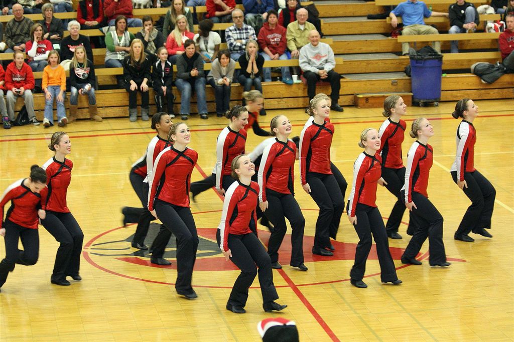 [Well, it’s not all just about throwing a ball through a hoop. The team did beat Moorhead under a scoring system that is totally foreign to me. The routines do require incredible endurance.]