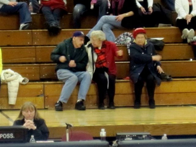 Fergus Falls – 40, Alexandria – 36. You know it was a big game. Ruthie was there for the first time. Gary Otto was there for the first time. And Laura and Larry McCoy were there for the first time – well, at least since the 80’s when they watched three all-conference progeny perform on a regular basis. And, of course, Luella and Otto were there. We were all there to watch our undefeated girls’ basketball Cards play once beaten Fergus Falls to keep pace with undefeated Sartell in the conference. I think it was the biggest crowd of the season, boy or girl.