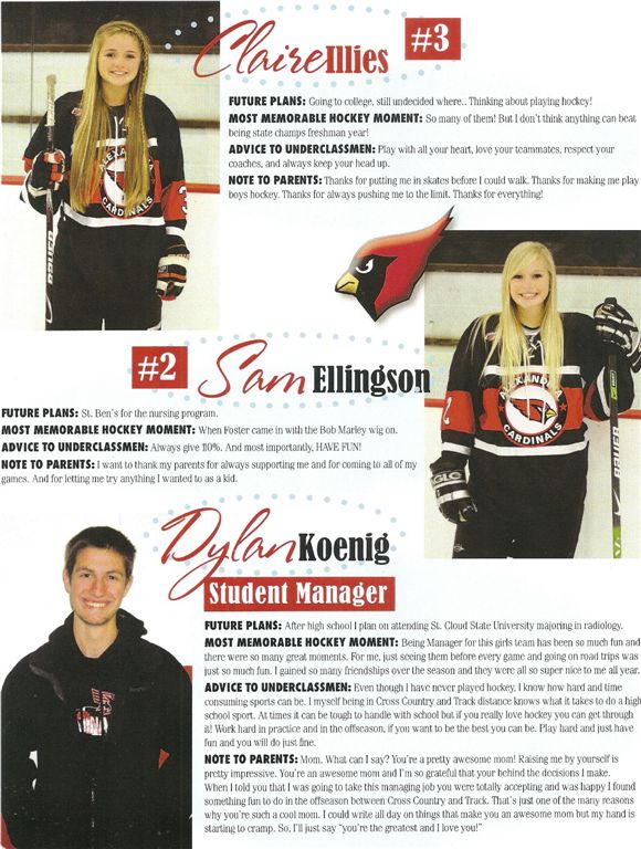 Initially, I have to offer my sincerest apologies to Sam Ellingson. As girls’ hockey senior night emcee, I lost my way (as occasionally happens to true “seniors”) in the 5-page script and missed a half page in her presentation. Lighting director, Marnee’ Herd, said she noticed it at the time and was about to give me an elbow to the ribs. So here, in a feeble attempt at redemption, is the missing half page about Sam: