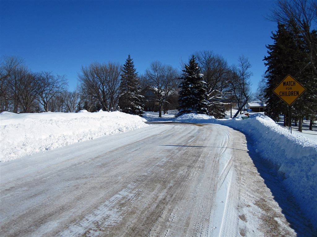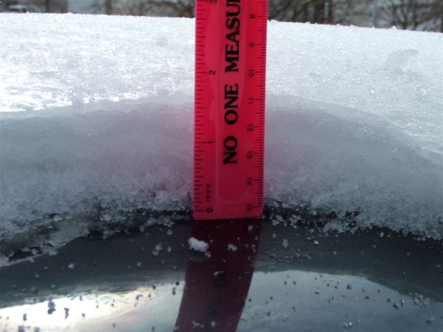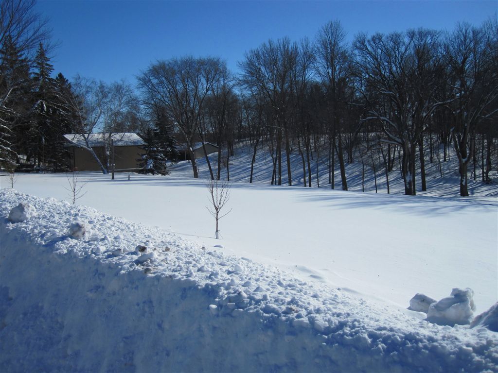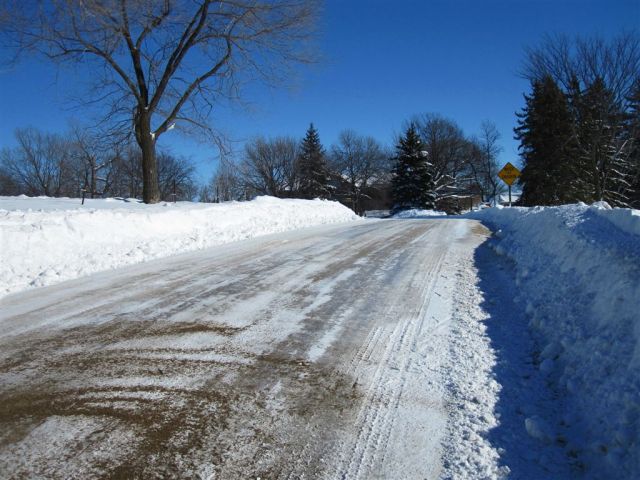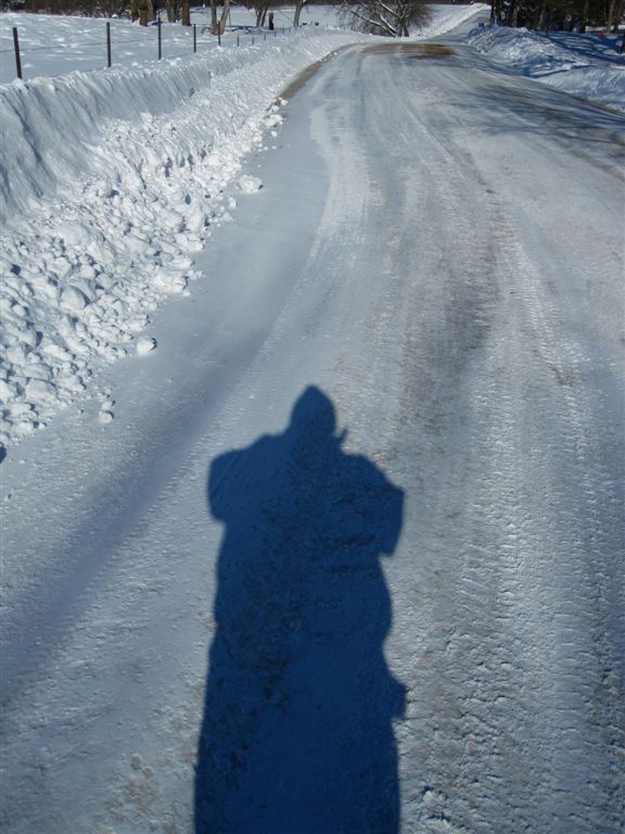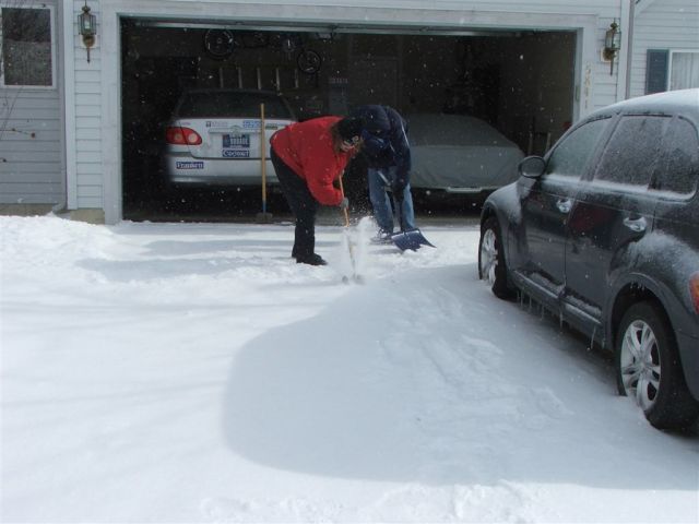 Well we ventured outside of the house for the first time in a couple of days (other than my mailbox skate – we did not receive mail today). With the use of our trusty hoe and a flat blade scraper we began to chip through the ice/snow/ice so that our car would not just slide down the drive when we actually attempt to drive again. Given the slope of our drive, my girth, and Newton’s 1st Law of Motion, I quickly discovered that after a few steps I could then “glide” to the end of the driveway. Returning to the garage was another story – skating uphill in snow boots. Everything (drive, sidewalks, road) is covered with a couple inches if ice/snow/ice, it’s just like walking across the ice rink at a hockey, very smooth and polished.