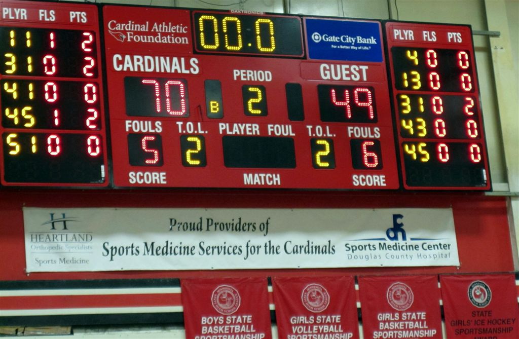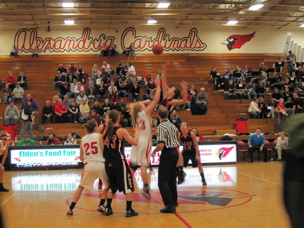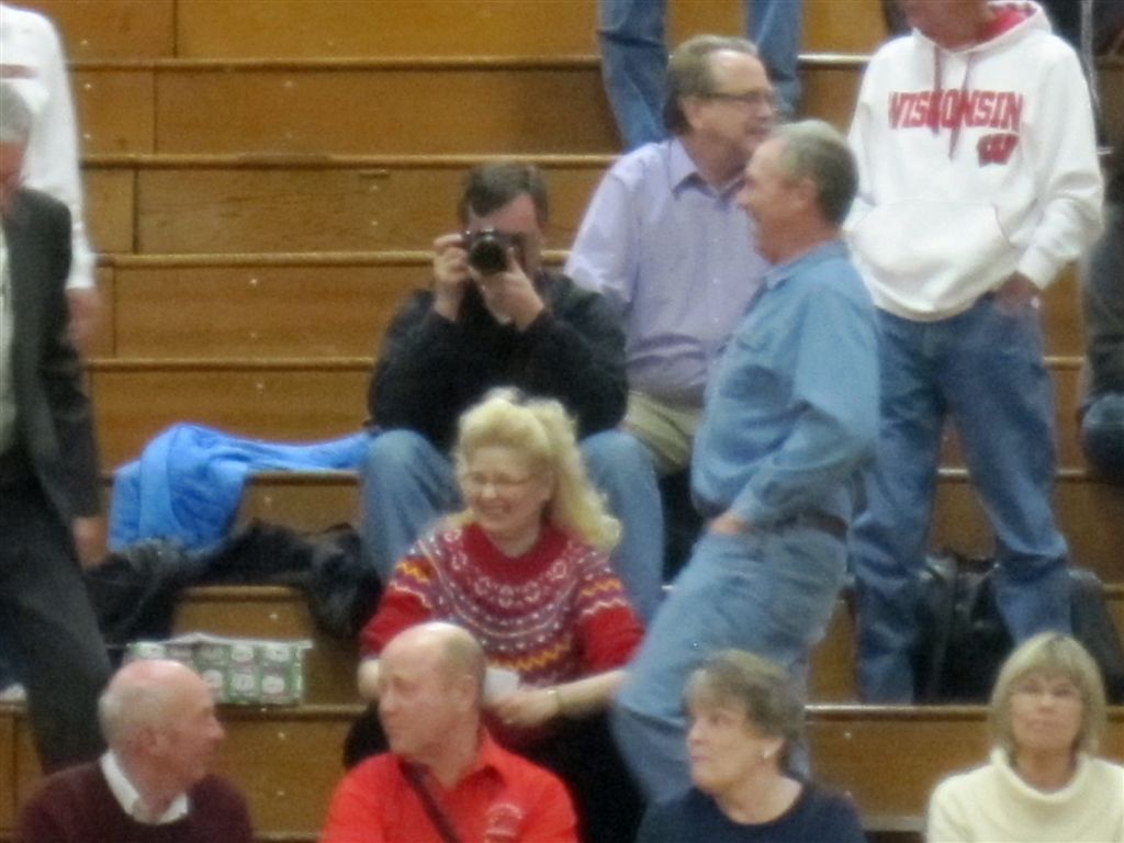 Last night was my lone venture into live sports coverage for the week. The Cardinal girls’ basketball team was hosting their fellow Cardinals from Willmar. Willmar had recently ended Sartell’s undefeated season, so we were expecting a tough match up. The game induced such anticipation that Walleye Willie (see video) made his first appearance at a game this year. I saw Bill arrive and sit courtside with Martin Haar; so I left my usual nosebleed seat and went down to join them – Dusty joined us by game time. We also noticed Super Fans, the Hoymes and the Halversons, had their usual seats above us.