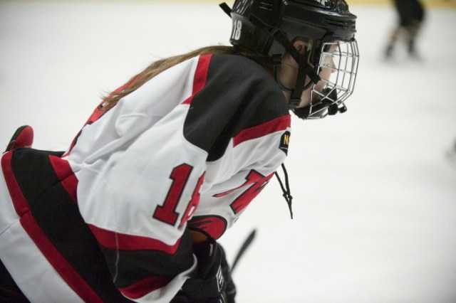 [The pink socks are a hockey tournament tradition – back to the days when the girls wore pink laces in their skates to make them look tough!]