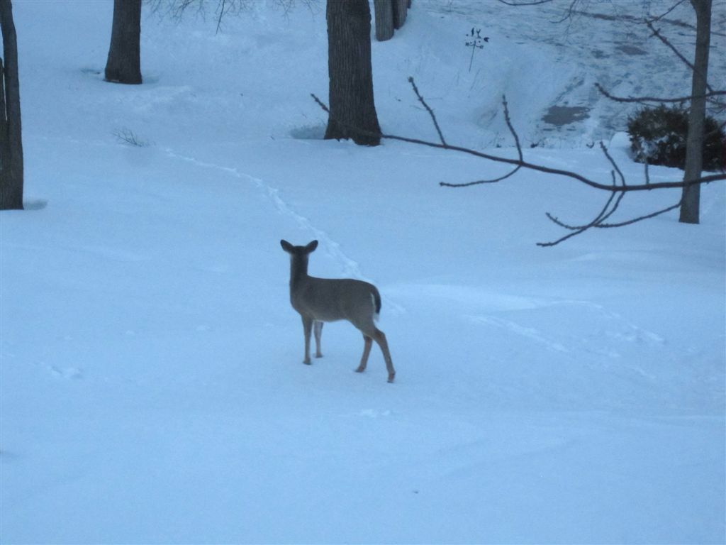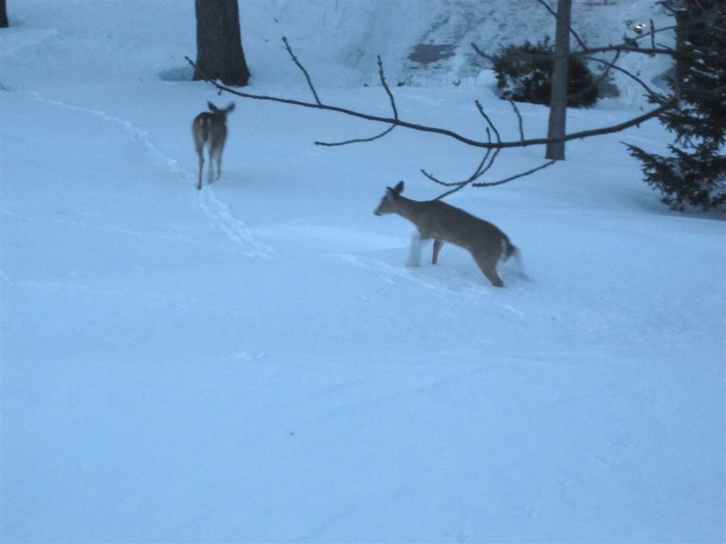 [Deer don’t wear snowshoes – they would occasionally sink in walkng through drifts.]