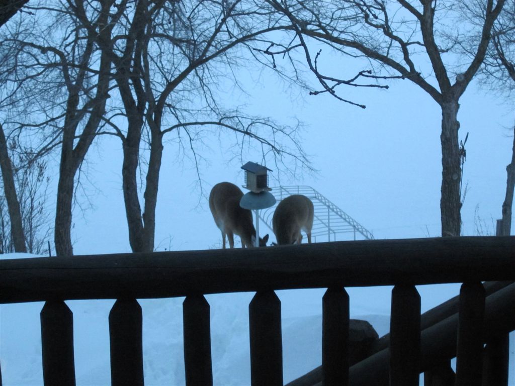 We raced back home to Alex – with the new gas prices, now a $60.00 roundtrip. The Card basketball team had a game that night. After we enjoyed a two-minute nap, we were getting ready to go when the supervisor shouted (I almost knocked over my glass of Geritol), “Where’s your camera??” There were six deer in our yard – we haven’t seen deer in the yard for years.