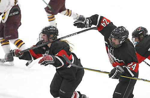 The Cards came out on a mission in the 3rd period, and Rachel Finley scored to pull the Cards within 2. Then we got loose on defense again and gave it back almost immediately. The Cards continued to pressure, and on a power play, Shelby Iverson drew the puck back to Claire Illlies two times in a row – the goalie caught and held onto the 1st shot, Claire’s second shot hit the 5-hole, and the Cards were behind by 2 again. Then Red Wing scored again! Though the Cards controlled the 3rd period, outshooting the Wingers 14-7, and 37-30, for the game, they lost 5-2. It was a good competitive game, and the Cards played hard to the end. With everyone back next year except for Claire, and with lots of talent in the pipeline, I suspect we will be favored to return to state again next year.