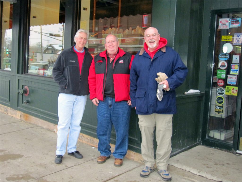[Pre-game nosh @ Cossetta’s with alums Greg Johnson, Al Grundie, and this reporter.]