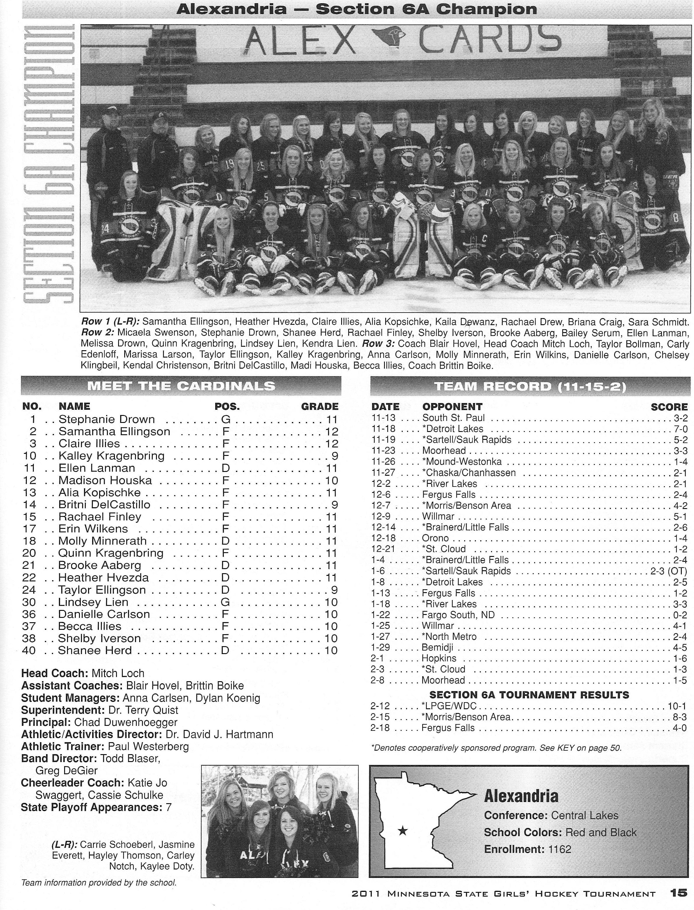 But the above is not to establish an alibi. By the bad luck of the draw, we had been selected to play the No. 1 seed, the “Marvin Windows Team USA All-Stars.” Even a totally healthy Cardinal team would have been overmatched. The “All-Stars” won, 7-0. Claire and Shanee’ and the team played as well as they could. The highlight of the game was that Sam Ellingson, a senior who seldom gets ice time, got a chance to play in a state tournament game as it was winding down (though a Cardinal fan did note that the “All-Stars” still had their top line in at the time). I subsequently wrote the following letter to the Minneapolis StarTribune, which won’t be published of course: