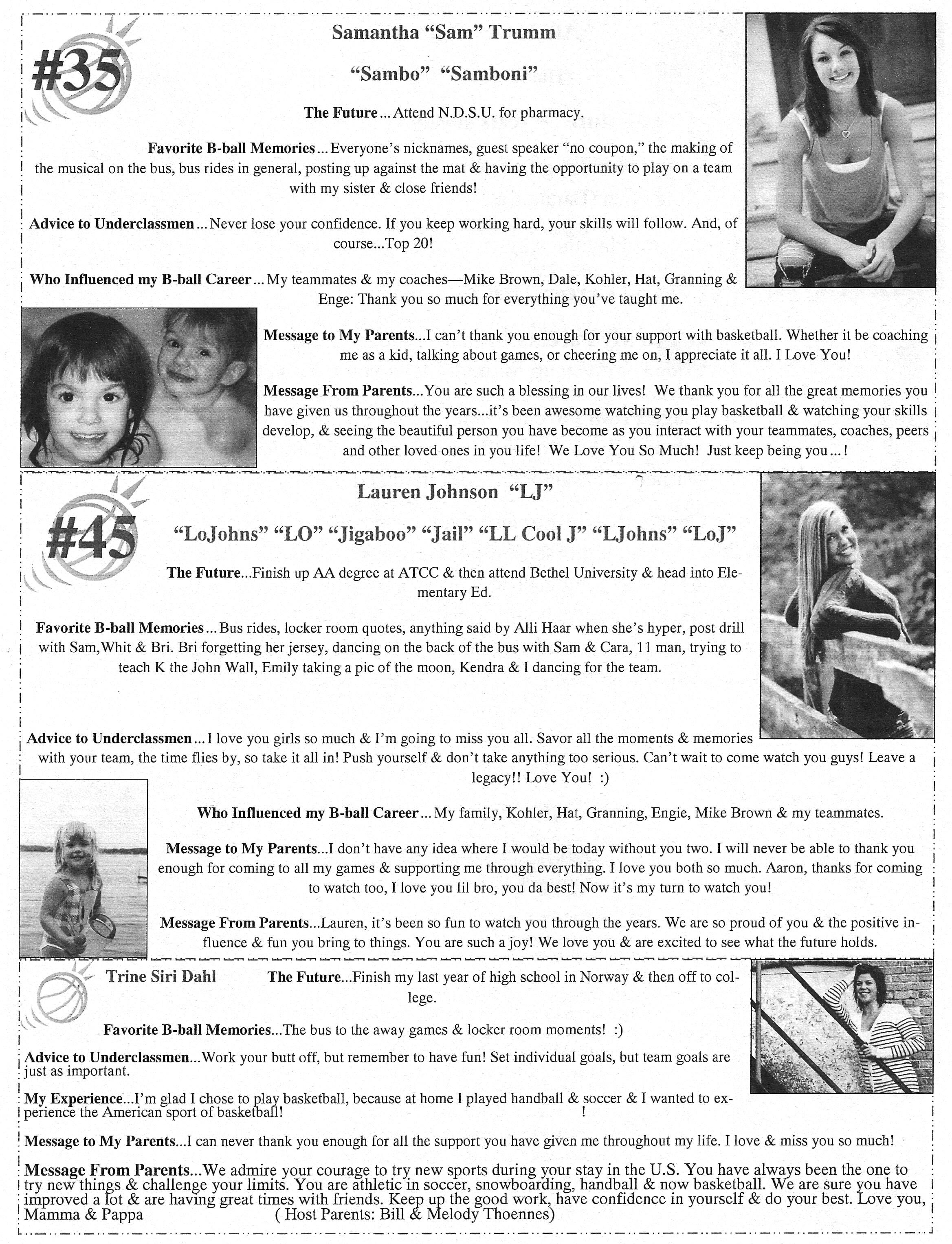 [From the Trumm files, the seniors: Back, l-r – Alli Haar, Joie Warnes, Lauren Johnson; front, l-r: Brianna Ebert, Sam Trumm, Mo Eigen]
