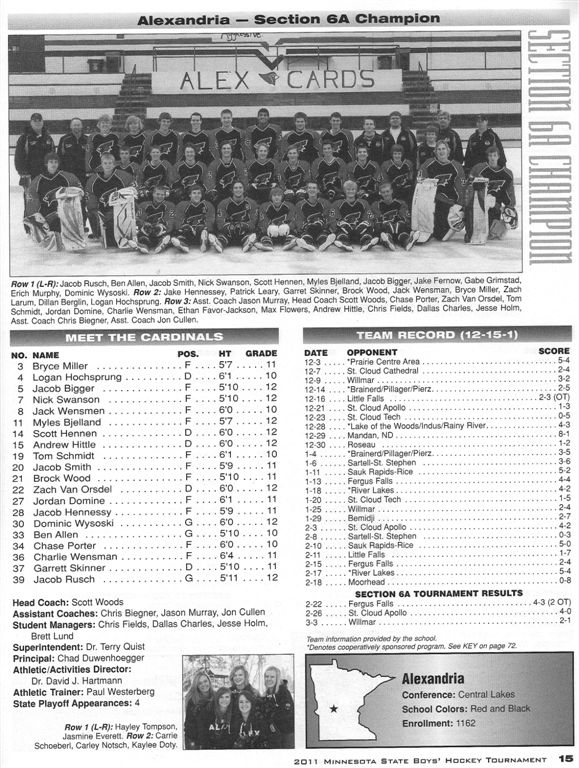 The Hawks proceeded to score four more goals in the period, with the Cards being penalized two more times, all but one of which were flukey bounces of the puck right to an open player on the far side of the net. 5 – 1 was the final score, as the 3rd period also went scoreless. Hermantown was the better team, and congratulations to them – but our Cards really over-achieved this year just to get to state. So a big congratulations to them!