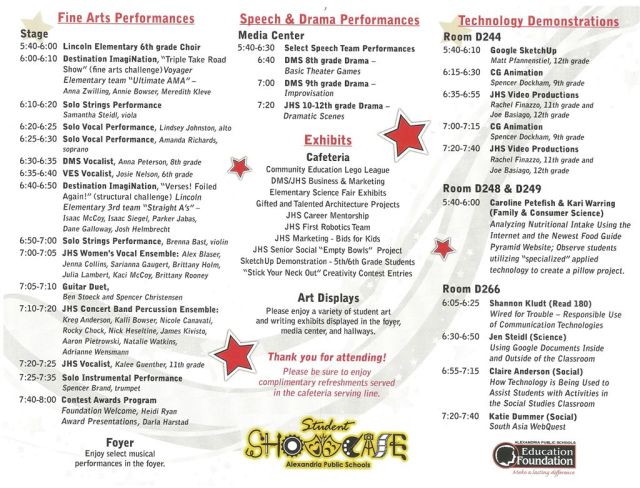 Last night, at Discovery Middle School, the Education Foundation sponsored its 2nd annual (thus, almost making it a tradition) Student Showcase celebration. This is an opportunity for all students in School District 206 to display their multiple talents for an admiring public. In fact, their talents are so multiple, this reporter did not have an opportunity to cover it all. The kids do a great job.