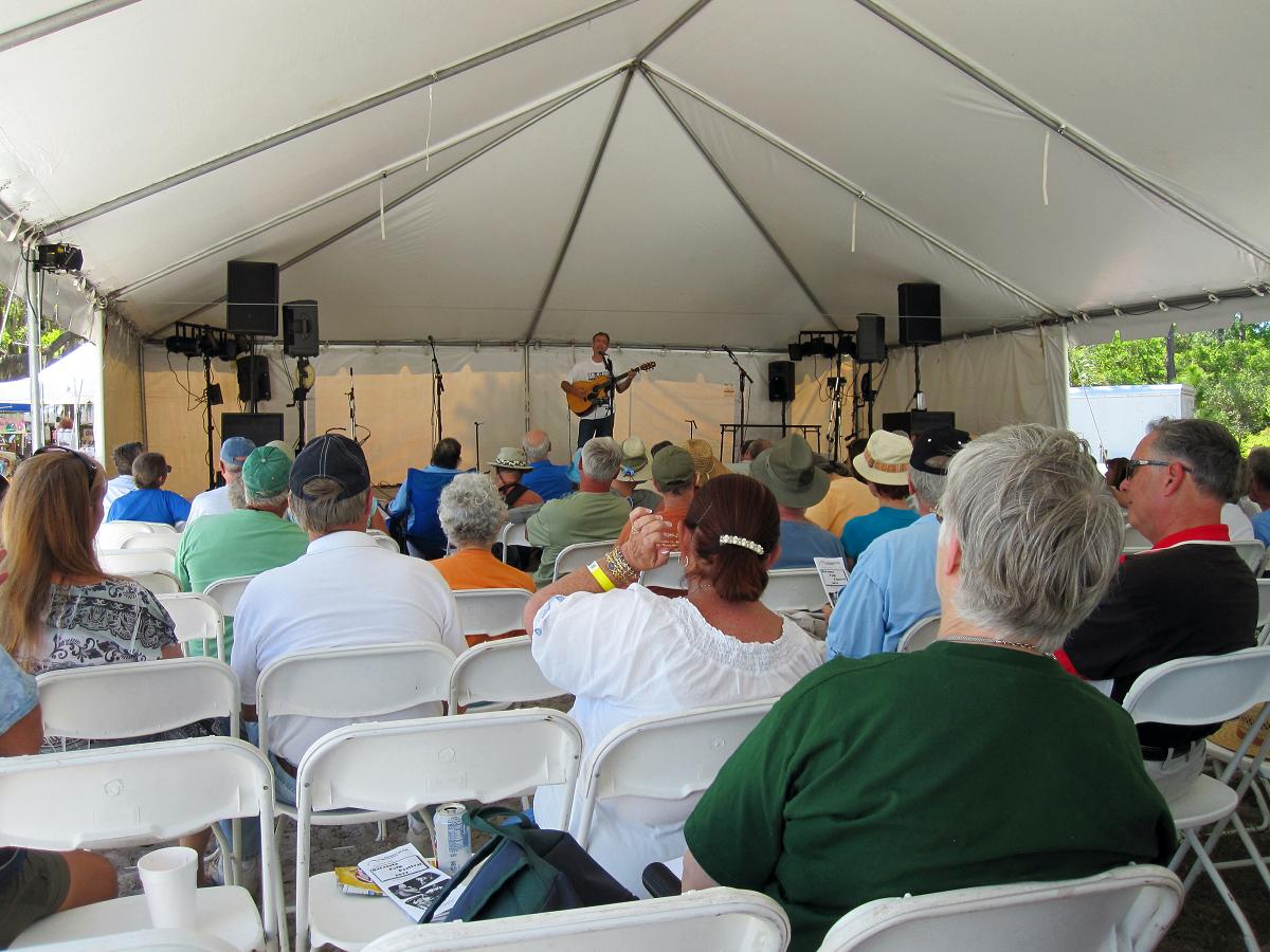 Patchouli was the last of four performances we enjoyed – all acts doing a 40-minute set. They had a full tent (the main stage) and received a standing ovation when they finished. Their introducer noted that Julie is responsible for global warming because of the brightness and warmth of her perpetual smile. And we’ll see them again before we know it – they’ll be back at Sixth Avenue Wine & Ale on April 14! (As native Midwesterners themselves (on the St. Croix, just north of LaCrosse), they said Florida was already getting too hot for them.)