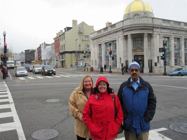 [Sister Gretch, the supervisor, and brother-in-law Mohamed at the intersection of M Street and Wisconsin Avenue in Georgetown – otherwise known as “The Center of the Universe.” Gretch and Mohamed have lived in downtown D.C. since the Harding administration.]