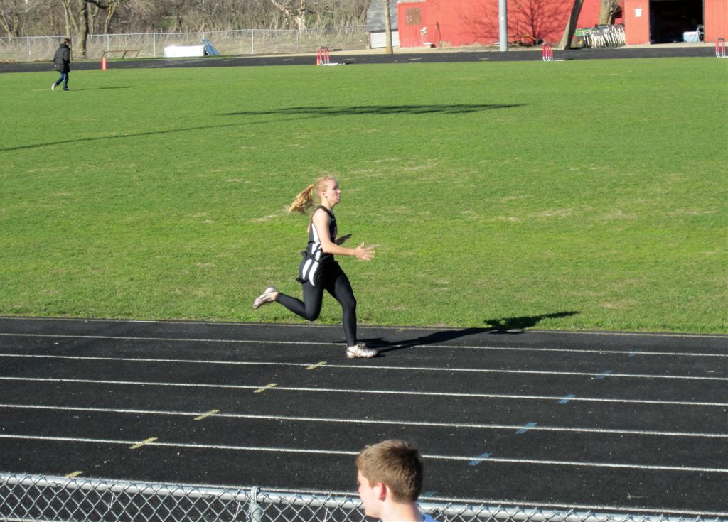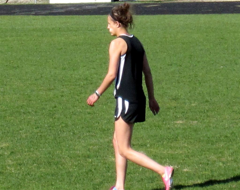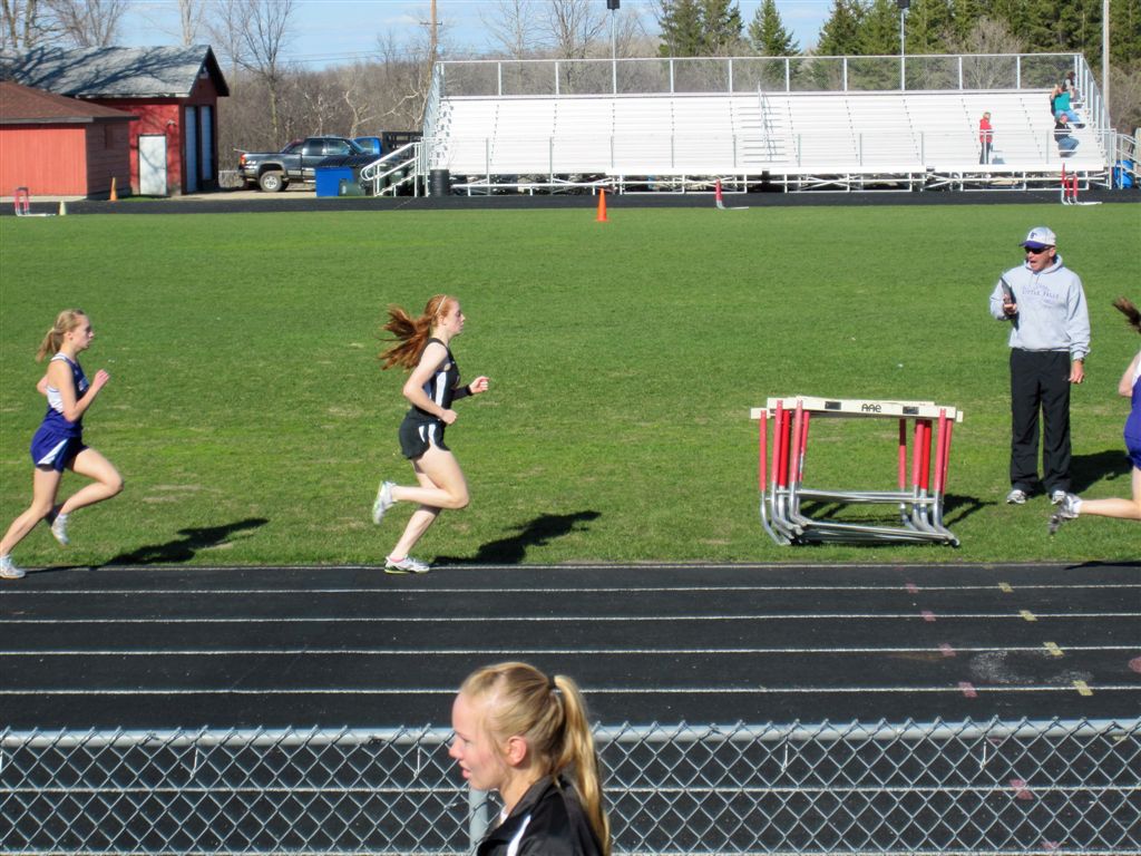 [The above video shows Jamie winning the 800. She also competed in a relay. She did not run in the 1,600, and there was no 3,200, her two specialties. The 800 was probably for speed work.]