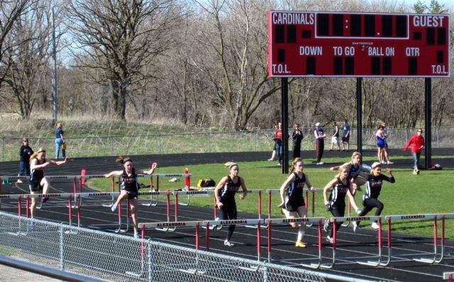 I had not been to a track meet probably since my days at the “U,” some 45 years ago. They are busy, with a lot of stuff going on, often at points distant from the viewing area. I tried my best, with assists from fellow fans, Carol and Dave Dittberner, whose grandkids, Julia and Will Sieling, are middle distance runners, to follow all our “known” athletes from the hockey and basketball teams – not always successfully. The hockey team was represented by Britni DelCastillo, Shanee Herd, Becca Illies, and Shelby Iverson; the basketball team by Alli Haar and Joie Warnes (with apologies to those I missed). I found the whole event to be quite exhilarating.