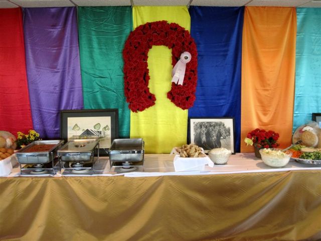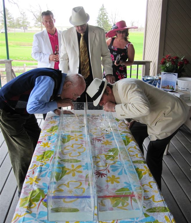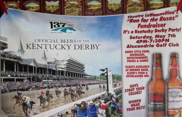 There was a Theatre L’Homme Dieu fundraiser at the golf club. The theme was the Kentucky Derby. We avoided mint juleps but made an attempt at appropriate attire. We assume it was a great success as “the joint was packed.”