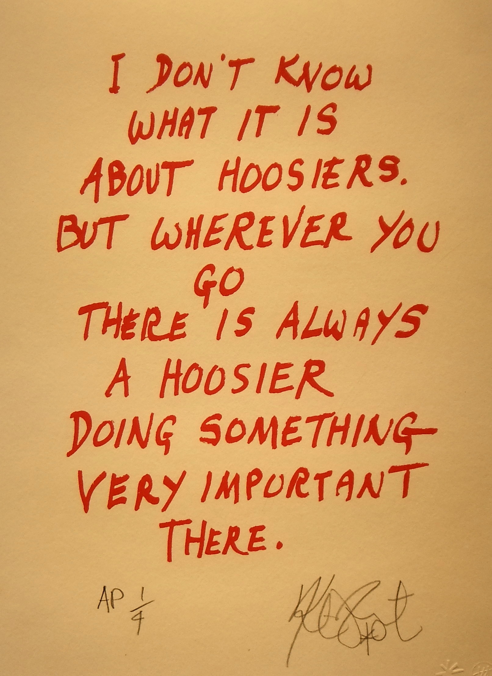 I suppose you’re wondering (as any sentient being would) what Kurt Vonnegut (he was a junior, hence the initials KV2) is doing on an “alexandriacardinal” blogsite? Well, the best I can come up with is the cardinal is the Indiana state bird; there is an Alexandria, Indiana; and the supervisor is a native Hoosier and is justly proud of her home state author. And this is also occasionally a travel site.