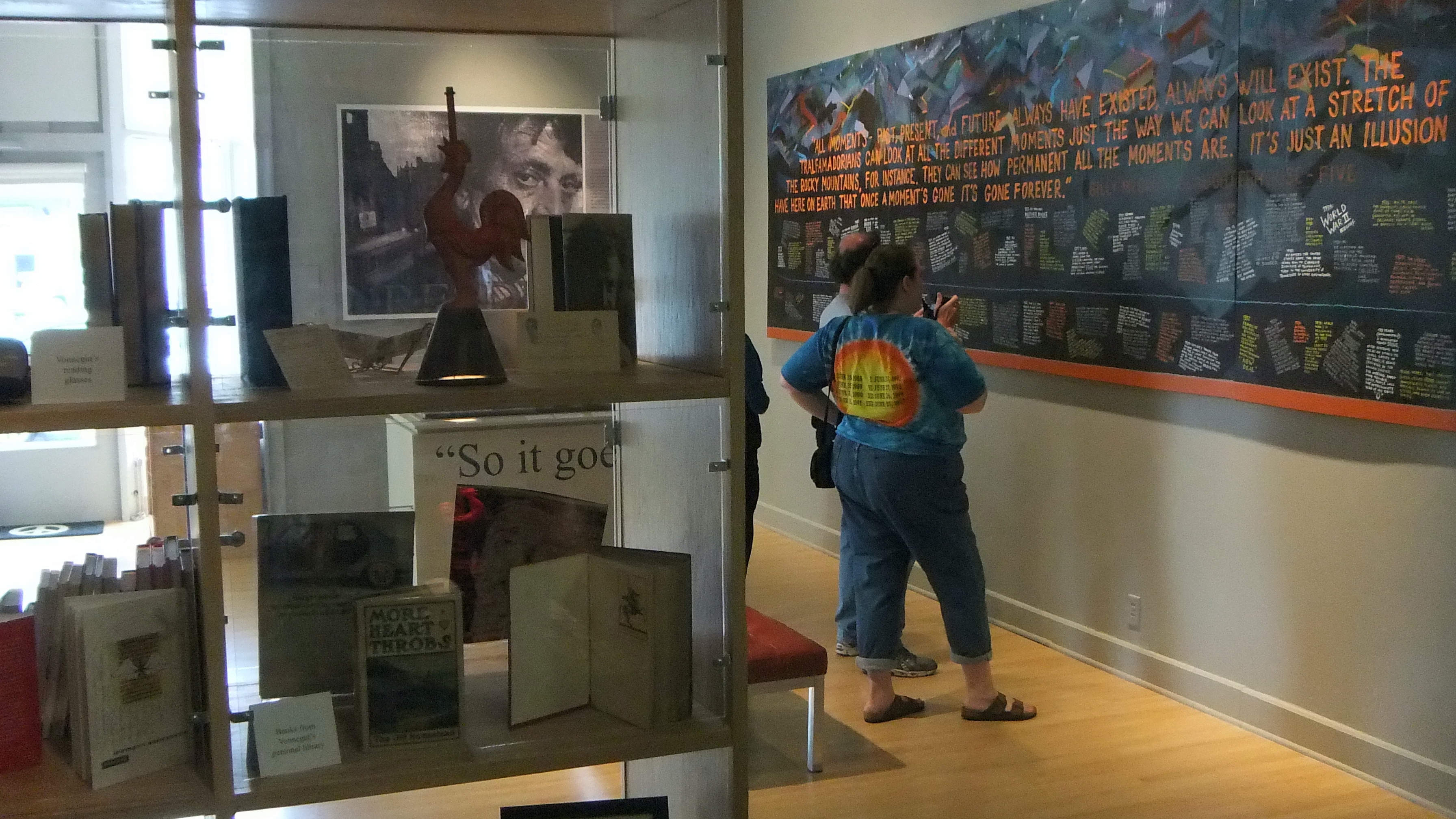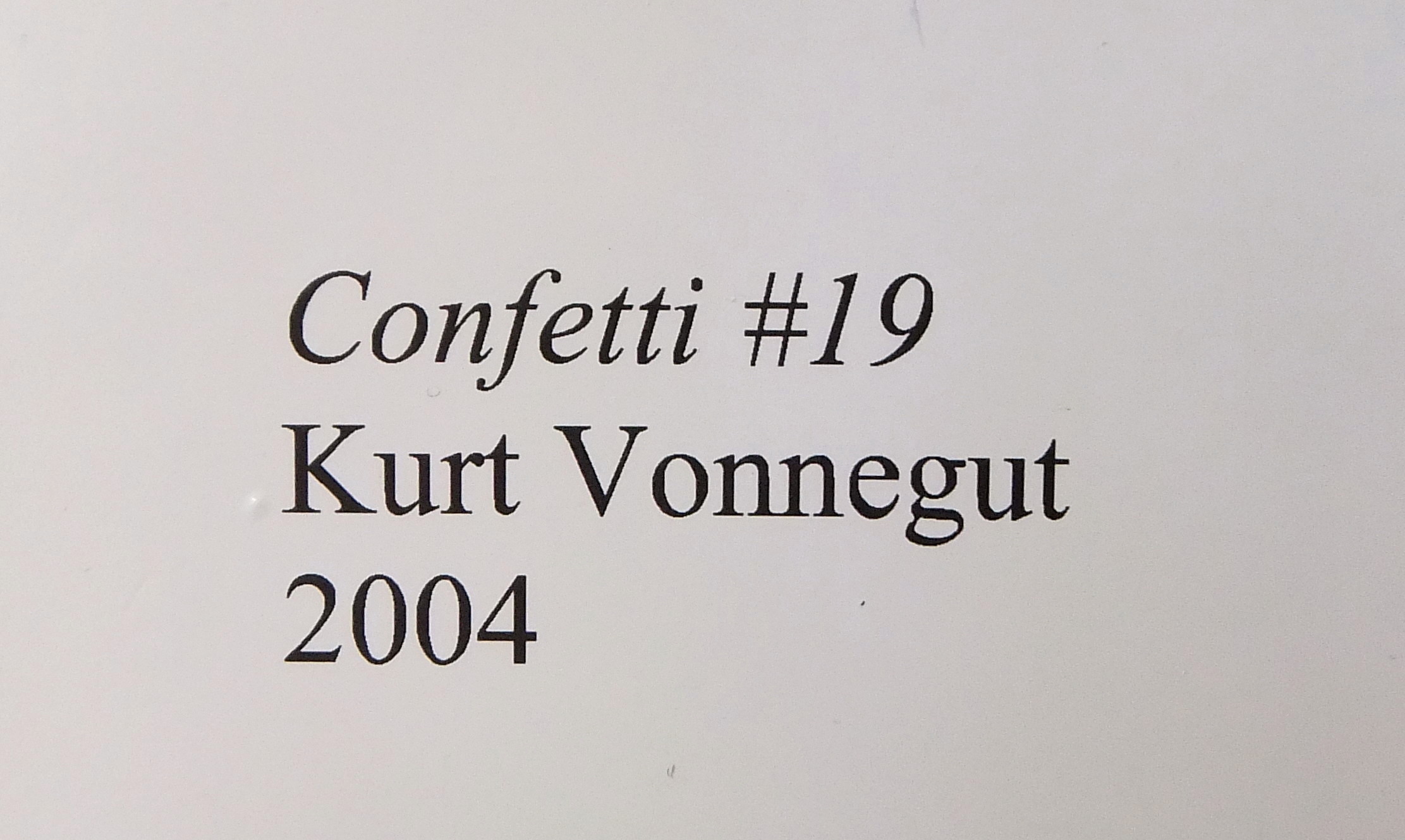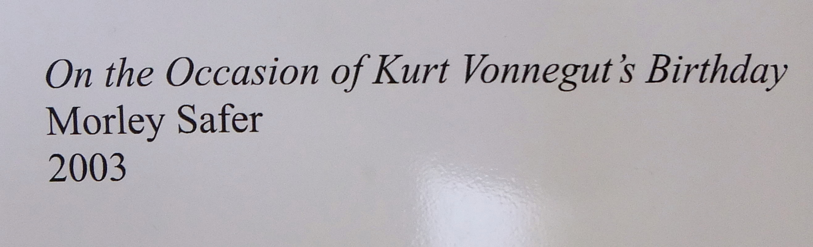 On our most recent visitation to Indiana, the kids took us to the new Kurt Vonnegut Memorial Library in downtown Indianapolis. As honorary Tralfamadorians, it seemed the proper thing to do. Beginning with Cat’s Cradle in the early 60’s, shaping our impressionable teenage minds, we became lifelong fans. The following reflects the displays at the library, including his artwork, and an homage by Morley Safer: