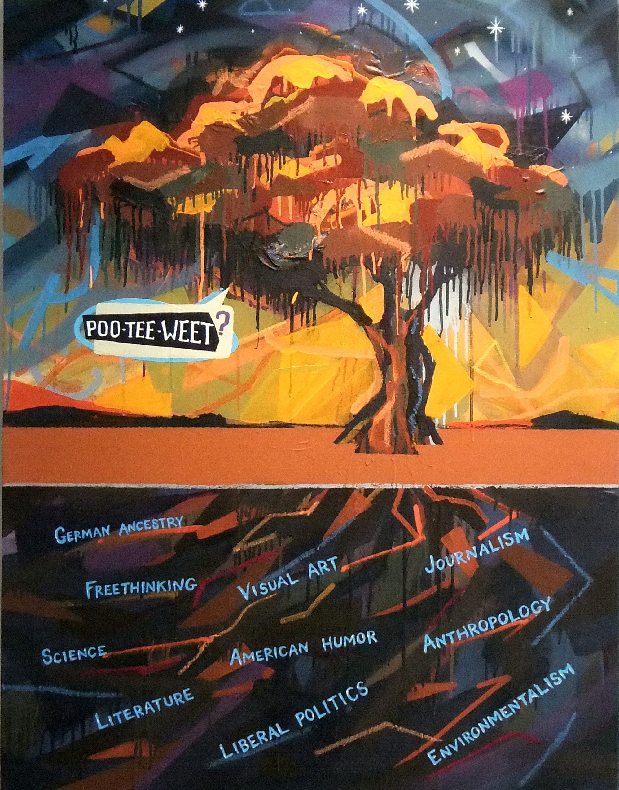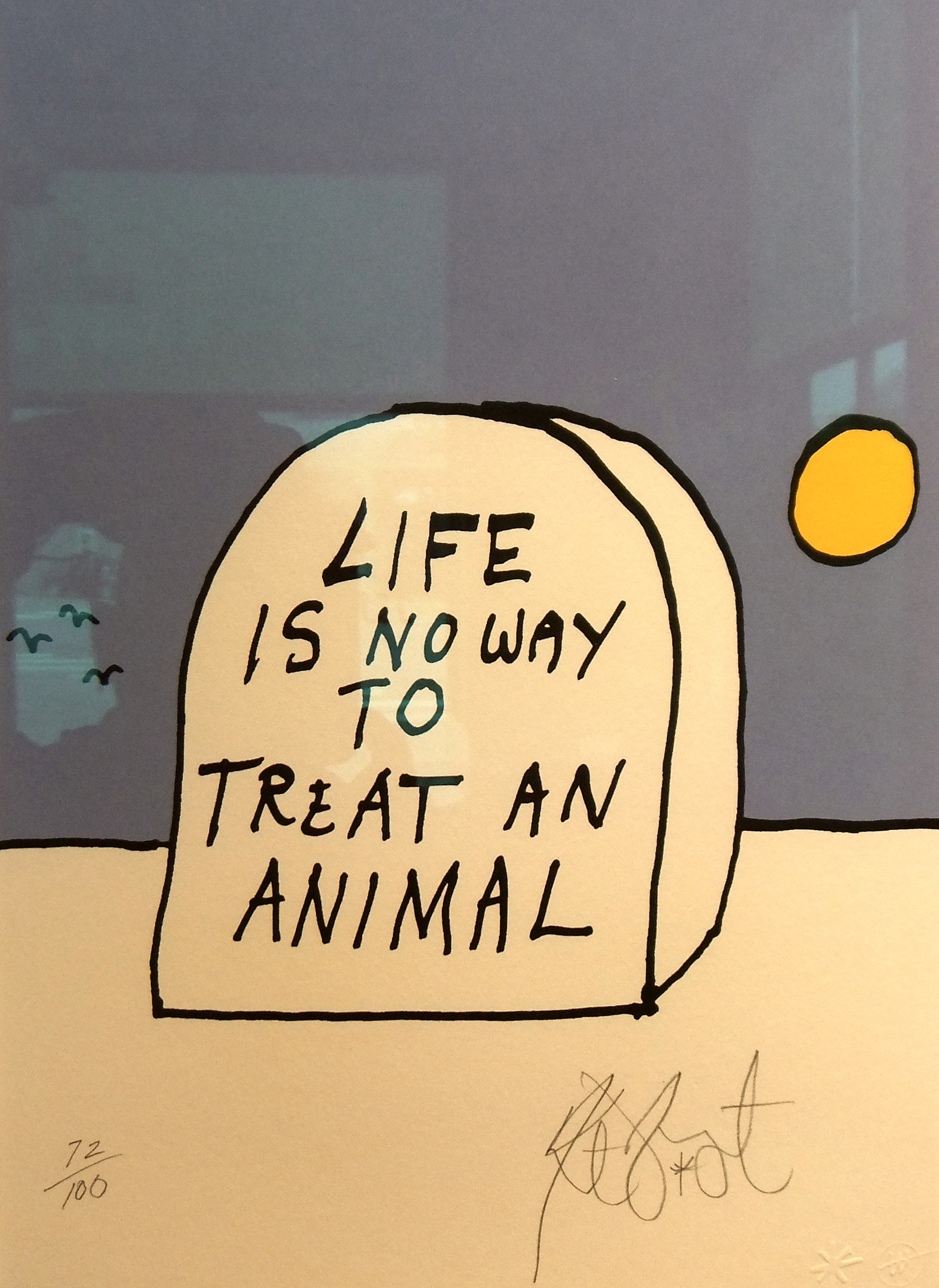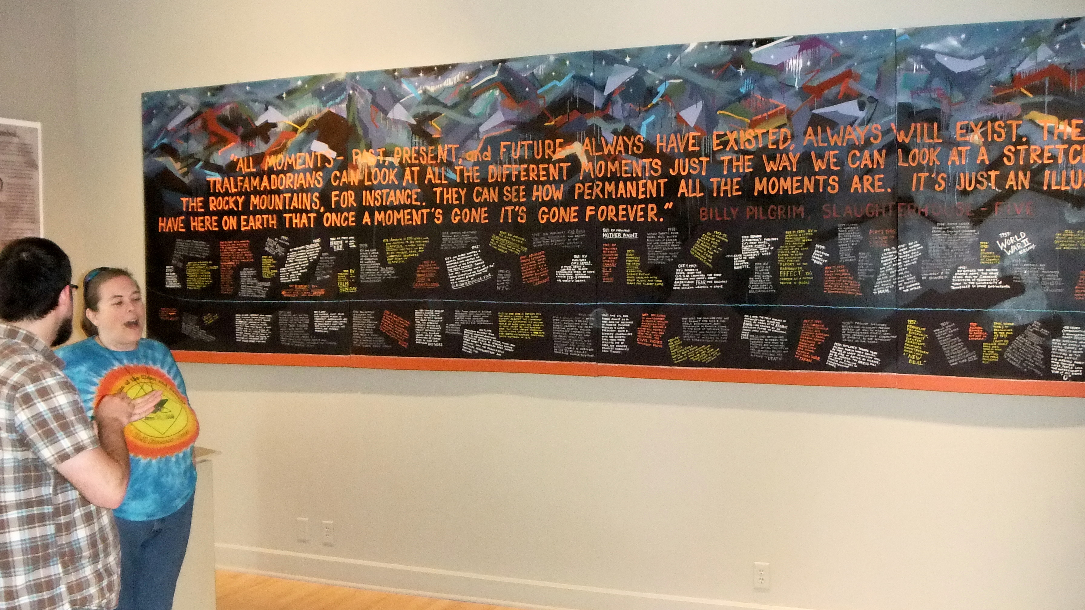 On our most recent visitation to Indiana, the kids took us to the new Kurt Vonnegut Memorial Library in downtown Indianapolis. As honorary Tralfamadorians, it seemed the proper thing to do. Beginning with Cat’s Cradle in the early 60’s, shaping our impressionable teenage minds, we became lifelong fans. The following reflects the displays at the library, including his artwork, and an homage by Morley Safer: