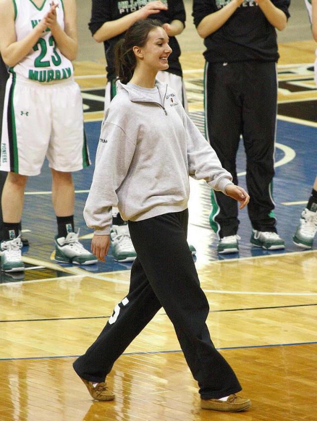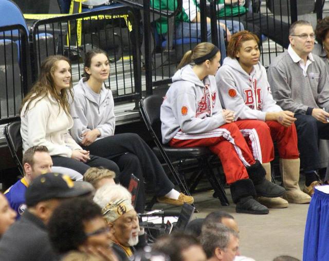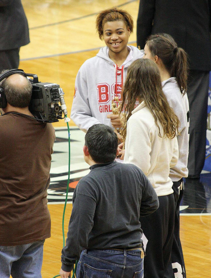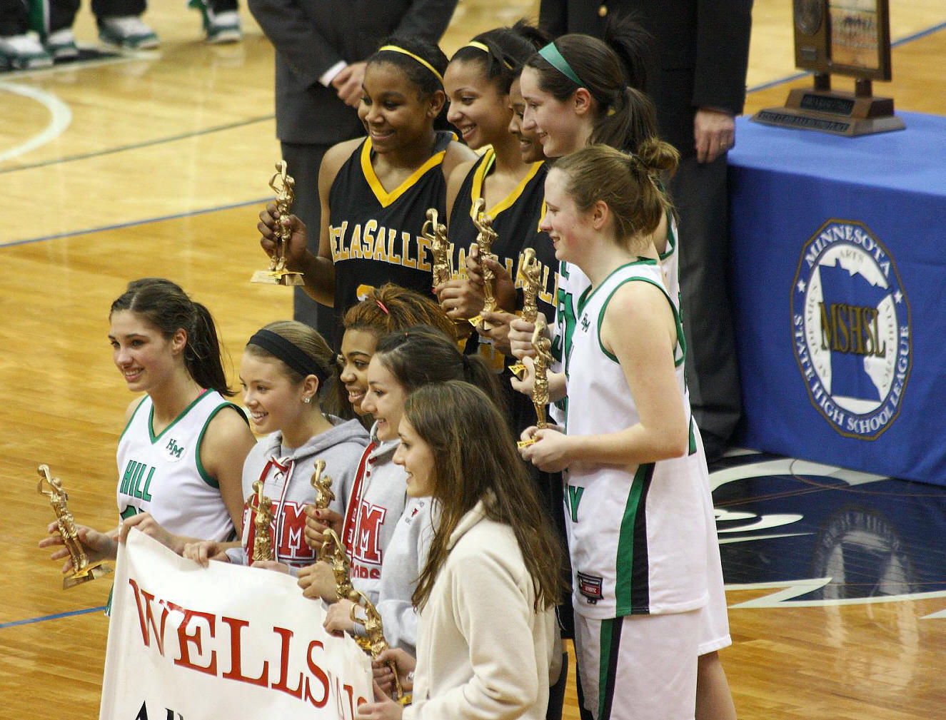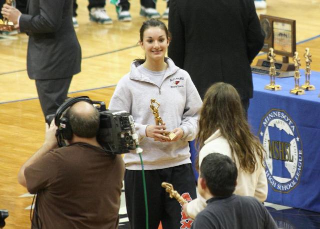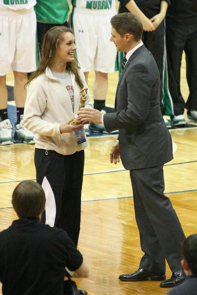 You may recall, though it seems so long ago now, that Sam and Lauren Trumm were named to the all-tournament team at the girls’ state basketball tournament. The staff photographer, their proud father, captured the ceremony. As members of my favorite team, Sam and Lauren earned their honors in a manner they had all season – as part of the team, where every player’s role was to play defense like crazy and to share the ball. Lauren is the upfront catalyst who could often score points in bunches when the team’s defensive pressure caused turnovers. She is a great finisher. Sam is the under-sized (at 6’1”) center who throughout the tournament was facing opponents taller than her – often by several inches. But at no time during the season did she face anyone who was quicker, faster, or a better leaper than she is – and it was great fun to watch her use those abilities.