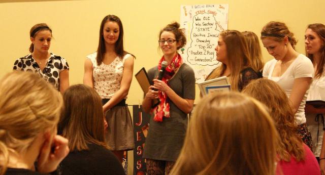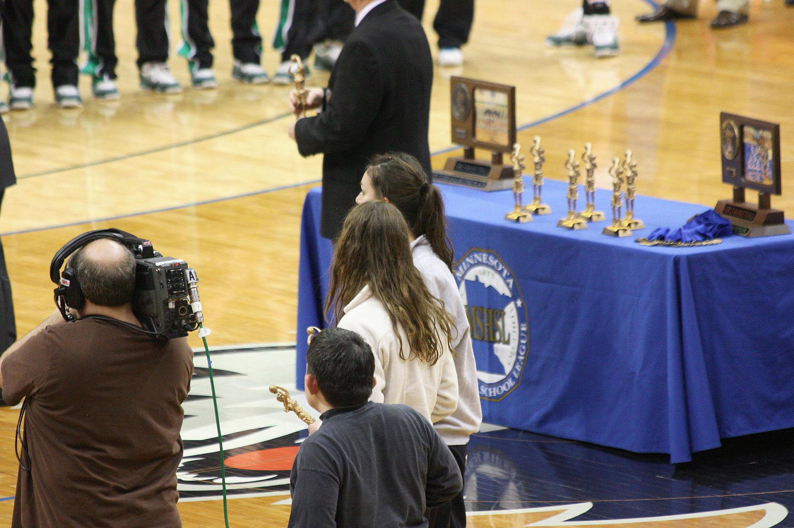 [Pre-ceremony instructions with players from Benilde-St. Margaret’s.]