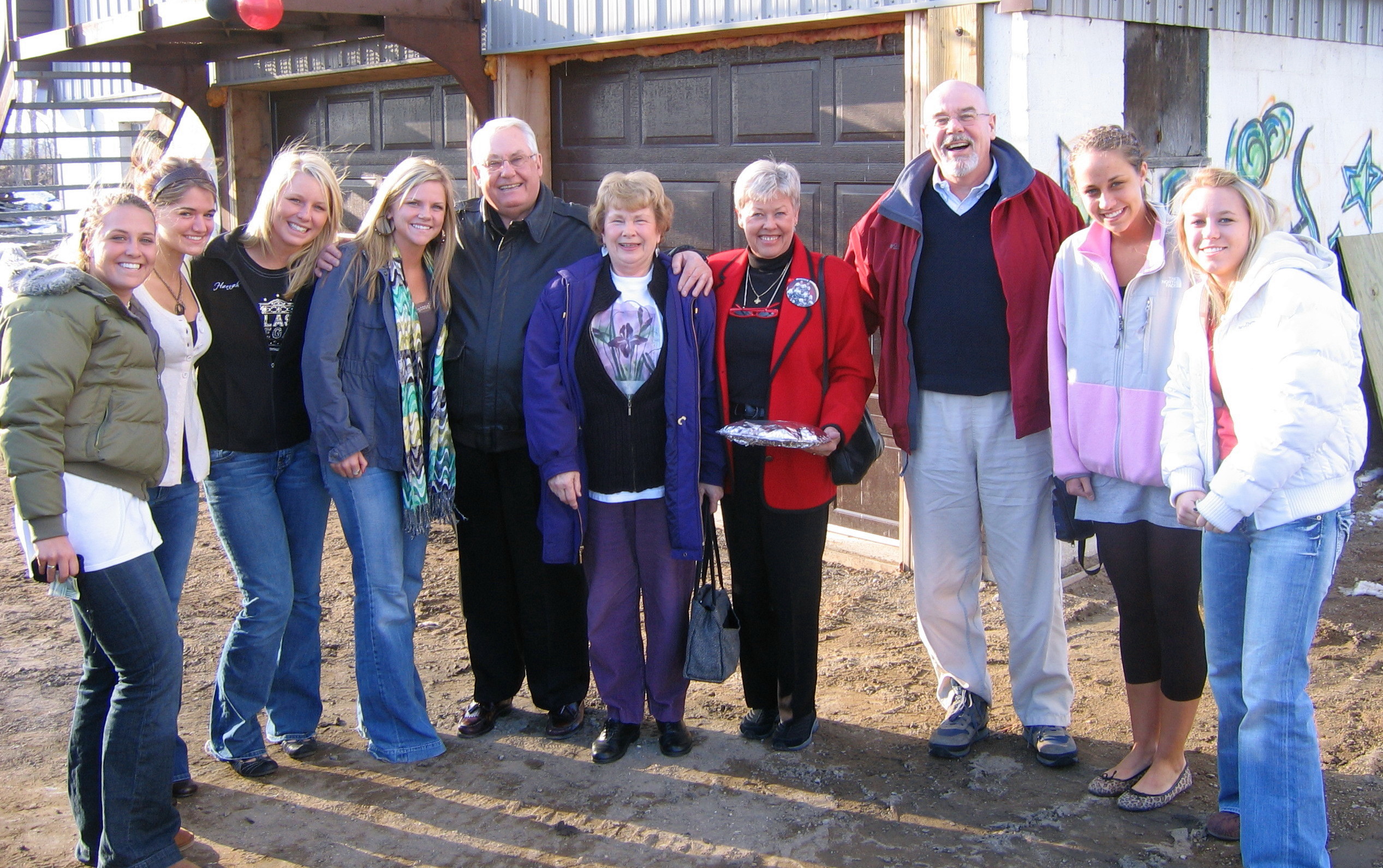 [March 25, 2008] Tonight was the annual hockey banquet, and the Super Fans were once again delighted to be invited. The hosts of this year’s event were Kyle and Deb Hvezda, parents of 8th-grade defenseman, Heather, at the building on their property known as “The Barn.” On our way in, we were intercepted by the cheerleading squad – and Doctor Colonel Professor Kiehne had the audacity tonight, after receiving my photo today of the first hole at the Alex Golf Club, to ask why we live in this god-forsaken place!