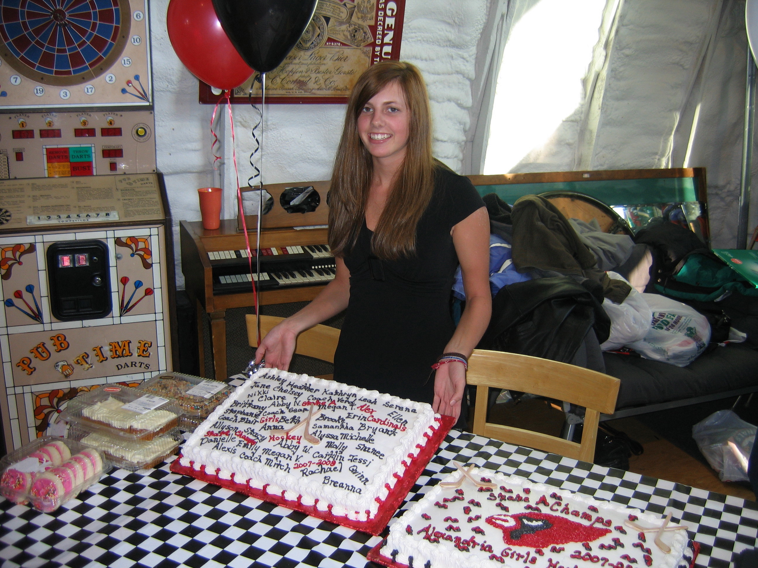 All-state, all-tournament, all-world goalie, Danielle “Roadblock” Justice, displays the cake with the names of the players for the state champion Cardinals. Oh, and did I mention all seven seniors are members of the National Honor Society (GPA’s above 3.5)?