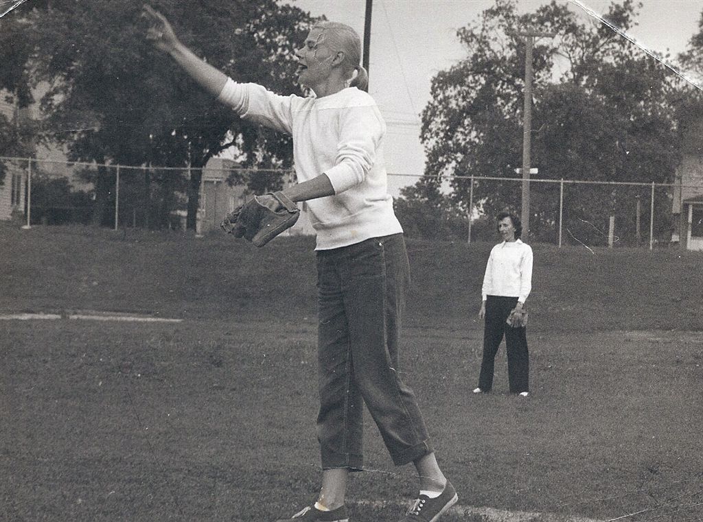 [“Tommy” Obert and Lenore Crouse in 1957, prior to Title IX.]