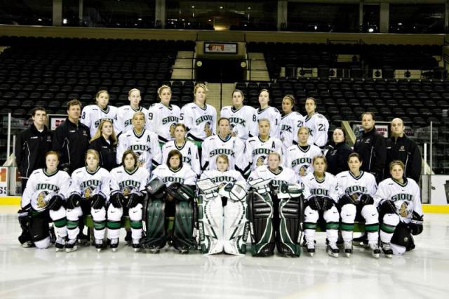 She’s has two assists in the Sioux’s first 4 games. Unbelievably, I could not find statistics on the Mankato State website, so I don’t know how Abby is doing. Gustavus’s schedule doesn’t state until Nov. 7, so nothing to report on Danielle and Del. [Ashley, 3rd player from right, back row.]