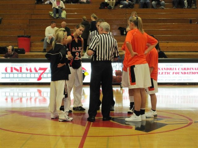 But, back to the game. The 2nd half began, and the ubiquitous Ms. Haar was back on the court after sitting out a good deal of time in the 1st half with 3 fouls. The Cards immediately went on 10 – 2 spurt fueled by Ms. Haar and the press. Then another cold spell that allowed the Sabres to catch up again. The Cards free throw shooting, often a hit or miss proposition, was factor in the Cards pulling away again as Ms. Haar was 6 for 6 from the line. The Cards lead a couple of times reached 14 – and they won 77 – 66. Alli played almost all of the 2nd half with 4 fouls and was named player of the game with 16 points, several steals and rebounds, and helped hold the Sartell center to just 7 more points in the 2nd half. It seems odd to have gotten this far without mentioning Angela Christianson scored 37 points – that just seems to be expected – and she is doing a much better job this year in getting her teammates involved.