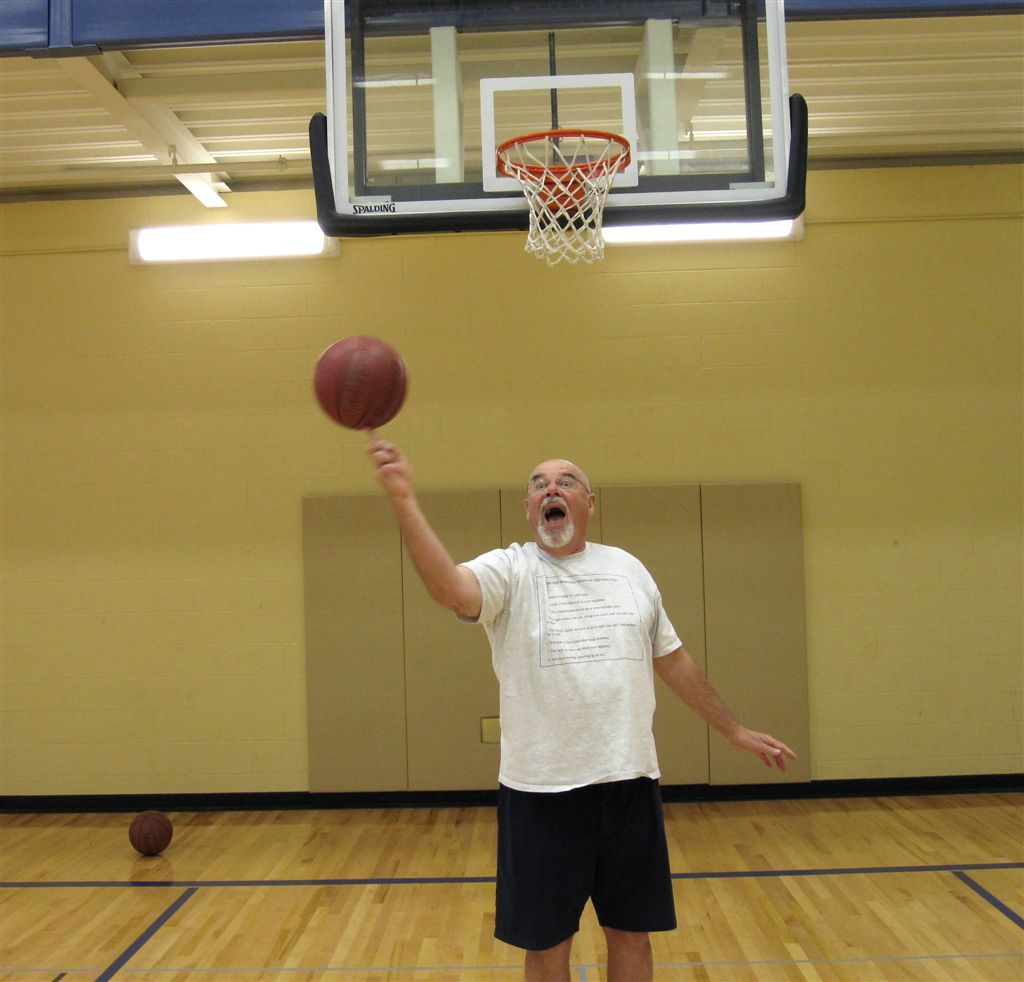 And, finally, in keeping with our sports theme, we would like to introduce you to the latest inductee into the SW Beautiful Lake Darling Hall of Indifference. He has, within his last week’s worth of trips to the gym, had free throw runs of 30, 31, and 33 (OK, Dirk Nowitzki made something like 60 of 62 in the Thunder series), thus belying the old adage that he is an “old adage.” (Photos taken by “Limpy” Annen after we smuggled the camera into the gym under the promise we would not take it into the lockerroom (perish the thought!).):