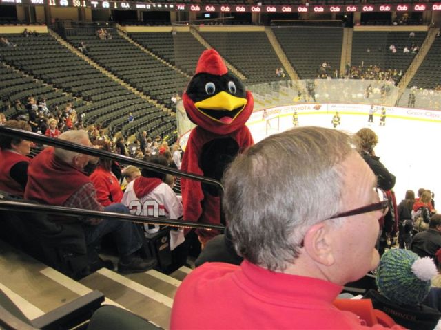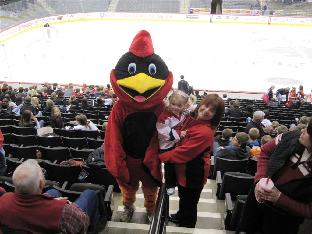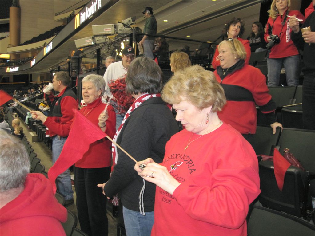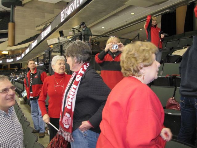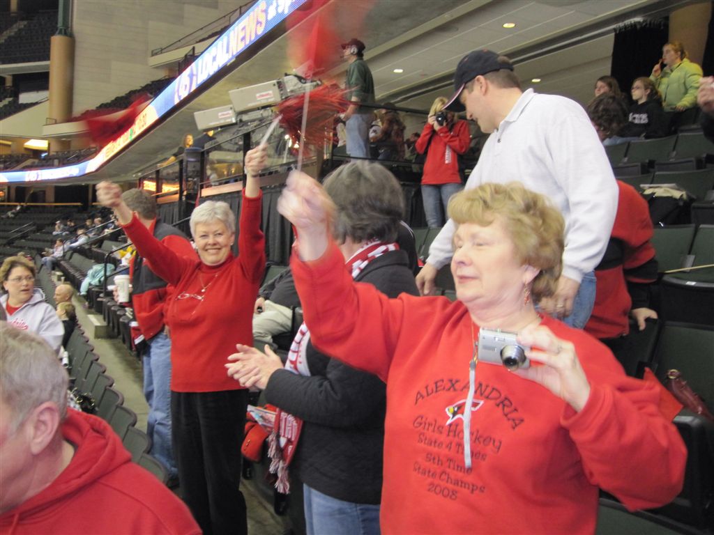 So, last things first. We drove back from the Cities yesterday after the girls 9:00 am 3rd place game, dropped Bob off at the Annen abode (he’d had enough!), and Ruthie, Vivian and I went on to the RCC for the boys hockey game. Ruthie & Viv still had enough lung power for cheering. We met a good contingent of Card fans at the game – John and Annetta Knowles (actually scouting for Hermantown, where there grandson plays), Robo, Dusty, the Hoymster, Scarby, Jim Pohl, and Paige Scarby and friend to be named later. Ruthie had to phone the game’s progress to Teddy Hockey, who with Sue, was down with Danielle for game 2 of the Augsburg – Gustavus match-up.