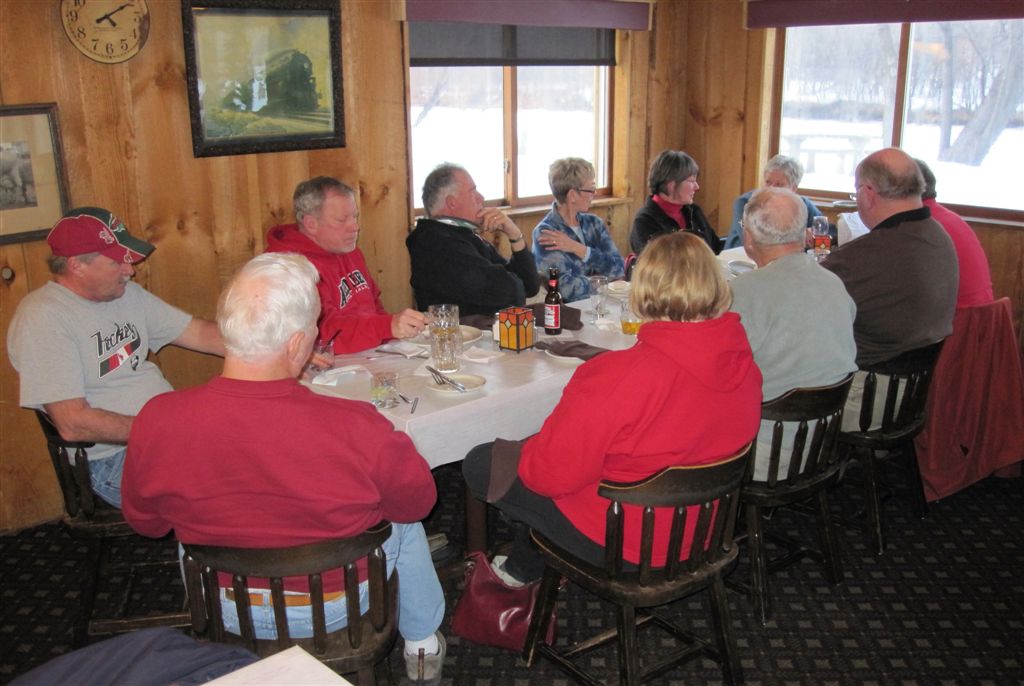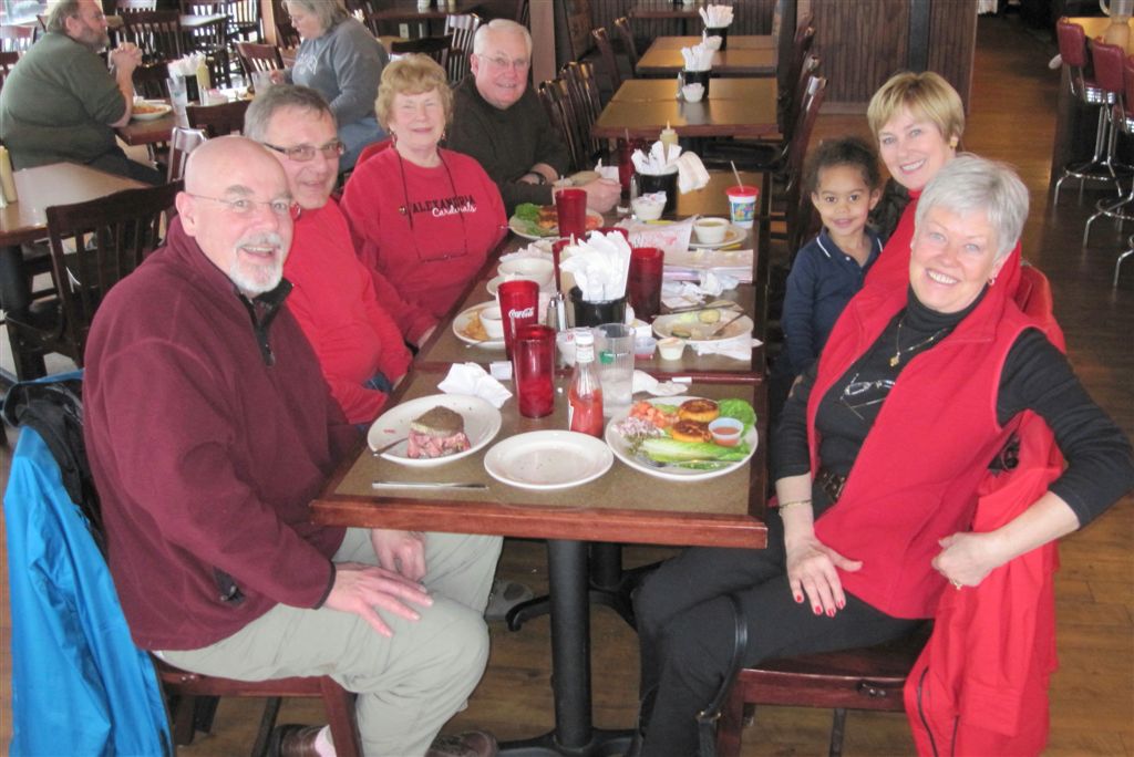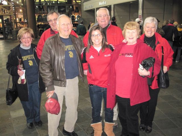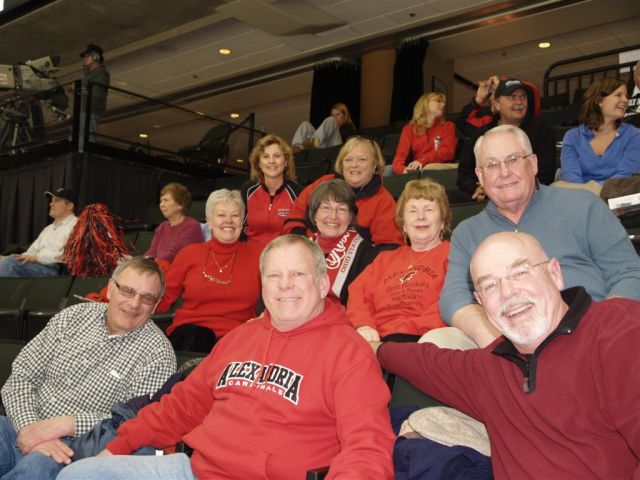 It all began with a sense of paranoia that only comes from being “the little town on the prairie.” Last year in the section finals, against a Little Falls team that was playing for its 5th straight trip to the state tournament, the MAC in St. Cloud sold out and many parents were not able to get in to see the game. They unfortunately missed what was later described as the greatest hockey game of all time – an OT victory by the dreaded Flyers over our Cards. So this year, apparently to alleviate a repeat of last year’s “difficulties,” tickets were put on sale from 8:00 am – 4:00 pm, then the ticket office was closed until 6:00 pm, an hour before game time. Since Sartell fans can throw a stick and hit the MAC, we assumed they would go and gobble up all the tickets during the day – who from Alex would be able to go to St. Cloud hours before game time just to buy tickets? Well, the Super Fans. Joyce and Dave Rogosheske led an advance party with Ruthie and me, and we were able to get tickets for the 12 Super Fans going to the game. We then all met up at Anton’s for pre-game dining, strategizing, and ticket distribution. As it turned out, Alex and Sartell appeared to have similar sized fan bases in the SRO crowd.