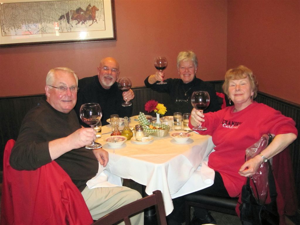 As usual (well, most of the time), we capped off the season with Bob and Viv at Vescio’s (they’ve remodeled the downstairs bathrooms!) in Dinkytown – a several block walk from the Arena and we were soaked puppies by the time we got there. Nothing like a fine Chianti to warm the cockles of our hearts.