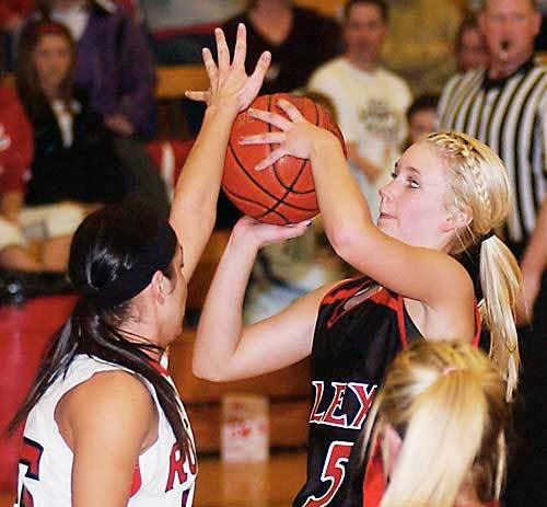 Here I’ve “borrowed” some photos from the Echo Press – of Kirby Nelson (No. 6) and Aaron Rentchler (No. 12), defensemen, in the Willmar game; of Shanee’ Herd (40) and Alyssa Haugen (8) in the state tournament game v. So. St. Paul; and Angela Christianson and Cara Wood (5) firing up some roundballs against Rocori.