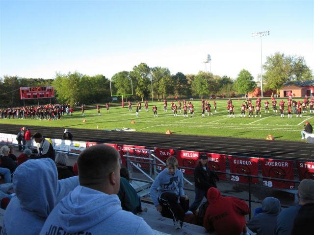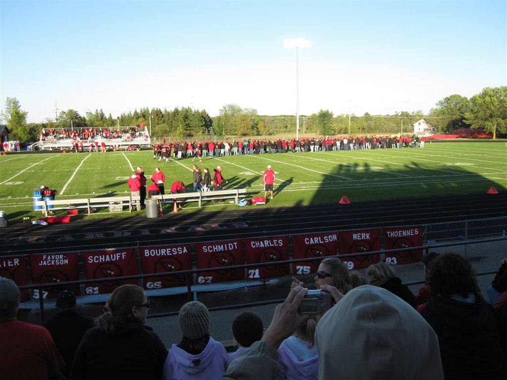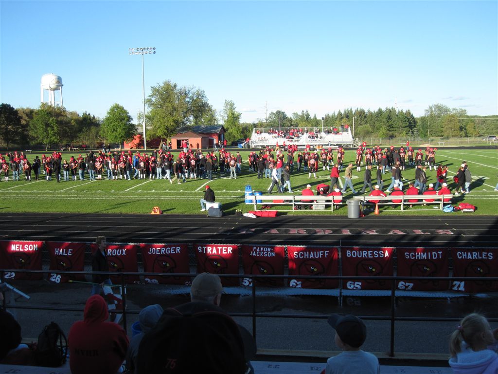 As a one-day early birthday present for the Cub Reporter, the Alexandria Cardinals defeated the Willmar Cardinals tonight, 22 – 21, in what was most surely one of the more bizarre games I have ever seen. Our Cards scored first after a situation I can no longer recall – I think it may have come after an interception – and it required only a very short scoring drive. We went for two. I knew then we probably had a kicker problem. We didn’t make it.