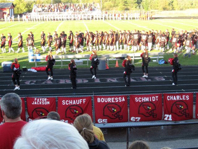 Got an e-mail today from a classmate who lives in the Bay Area in California. She was here this summer for our 45th class reunion. She said she will be back here on the weekend of October 15 and was wondering if the Cards had a home football game then (they do, Little Falls). If so, she wanted to join the “Super Fans” at the game – and then go to Osterberg’s after the game!