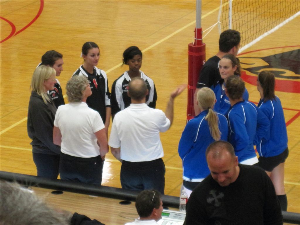 The Cards led 57 – 53 with about two minutes left (with Coach Wendy Kohler addressing the team). We seemed to have the momentum and just had to hang onto the ball for the win. Somehow, we managed to turn it over a couple of times – and Angela Christianson, an 80+ per cent free throw shooter who had been swishing them all night, missed the front end of a one-and-one that could have given the Cards a 6-point lead and probably the win. Still, with 1.9 seconds left in a tie game, the Cards had the ball for an inbounds play under their own basket. They threw it in – Sam Trumm and a Sartell player grabbed the ball simultaneously – and they called a foul on Sam! Unbelievable – there was .1 second left. You just can’t make a call like that to decide a game. Fortunately, the Sartell player missed the free throw – it should have been a no-call, but if they were going to make one, it just as easily could have been Sam shooting for the win.
