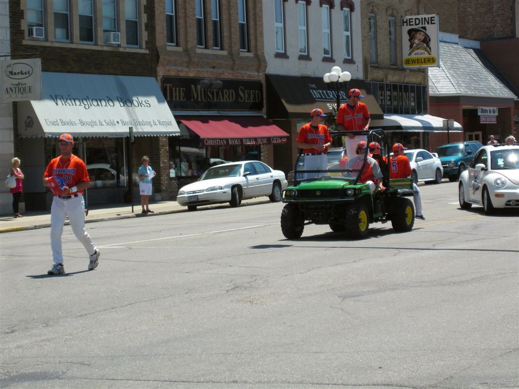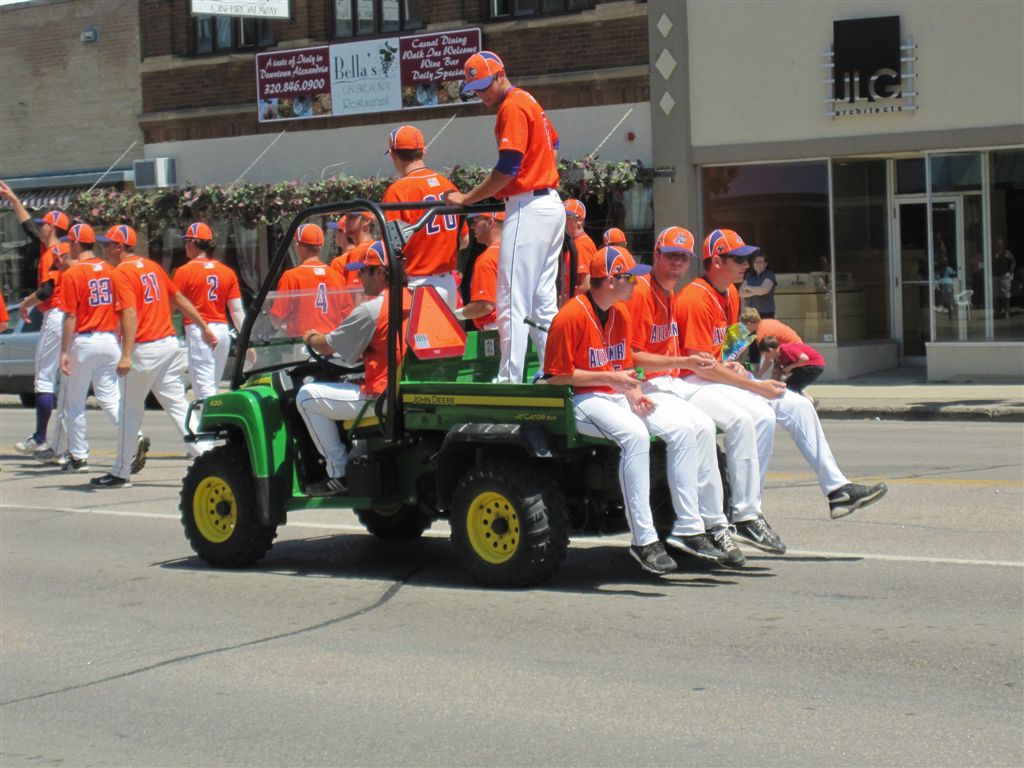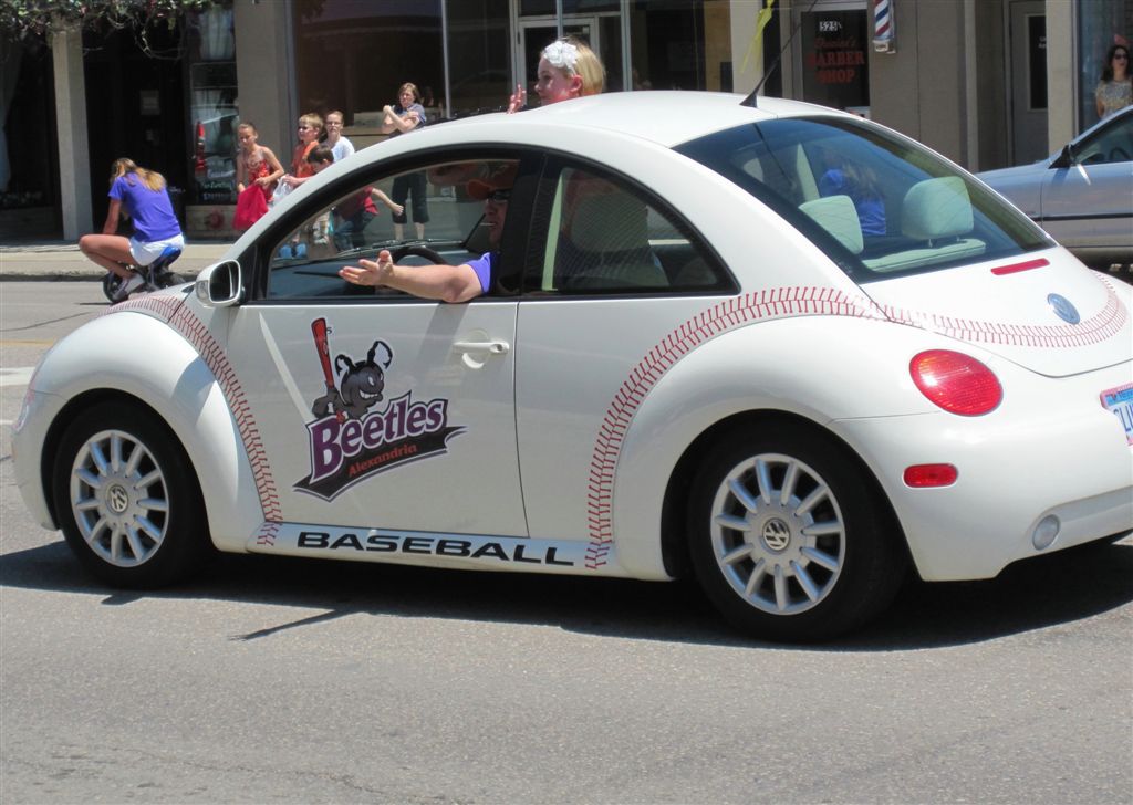 On Saturday, the 5th, Alexandria welcomed its hometown Beetles, of the Northwoods League (a summer collegiate league), with a parade down Broadway. The highlight was next-door-neighbor, Dangerous Dan, chauffeuring Mr. and Mrs. Mayor in his red Jag convertible.