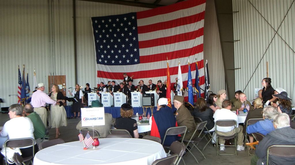 Then it was on to the airport – Chandler Field, specifically – for Greatest Generation Day (nee, Hangar Dance) with Doc’s All-Stars playing a benefit for the Douglas County Historical Society: