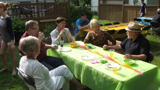 Friday, we went to the Cities for nephew Michael John’s graduation party. We had good intentions of visiting the state track meet that morning (see above), but the weather forecast was foreboding. A highlight of the trip down was a complete stop of traffic on I-94 a couple miles from Melrose – we inched our way to the exit, stopped at the Burger King for respite, and learned a cattle truck had overturned on the highway. We took the side roads to Freeport and re-entered I-94 until . . . Monticello, where we got off on 25 for the cutover to 10. 25 to Big Lake was under total renovation – I guess finally making it a 4-lane road. We inched along 25, got on 10, and eventually made it to Mounds View in a gut wrenching 3-hours. (The road trip home that evening was, of course, in the rain. As older people we do not like to drive at night; somehow driving home at night from the Cities is always exacerbated by precipitation!)