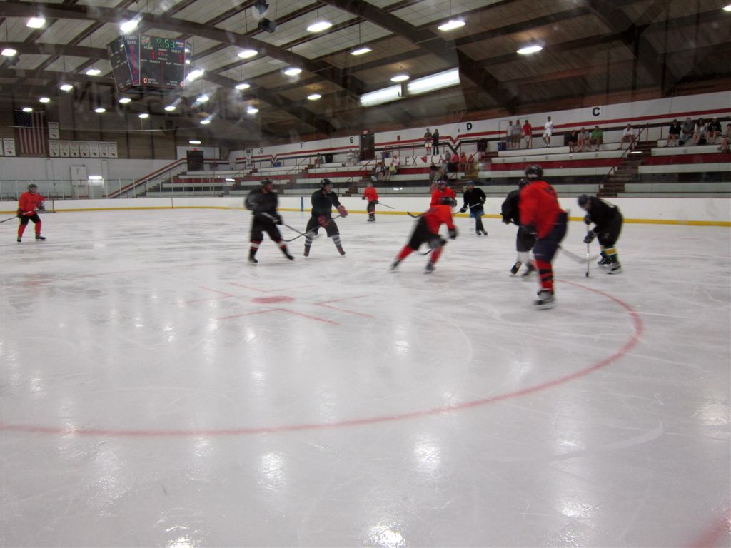 Before the late arrivals, Danny and I went over to hockey fest for a while – nothing like a little July hockey to bring one in out of the heat. Alex high school boys were playing for the orange team – they lost in a shoot-out: