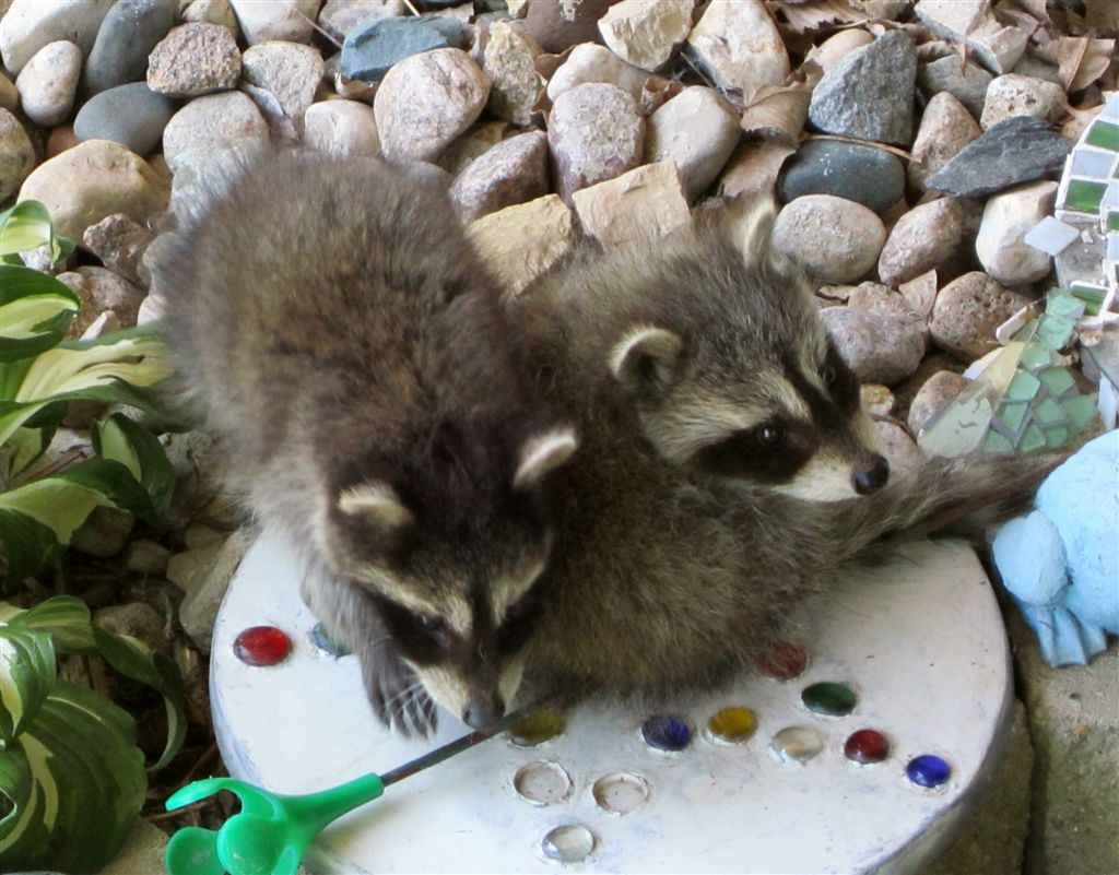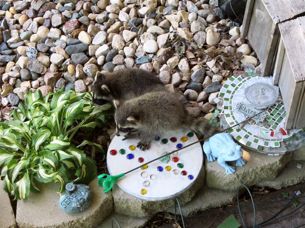 Saturday, the 2nd, was the first day of the beautiful weekend. Danny was already here – Rita, Jami, and Tommy would be arriving from Indiana later that day. Early on Danny gave a shout out that there were two baby raccoons by the back door. We went out – got some photos and a video: