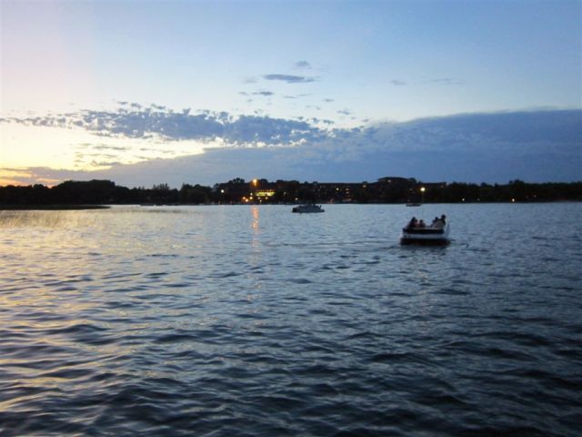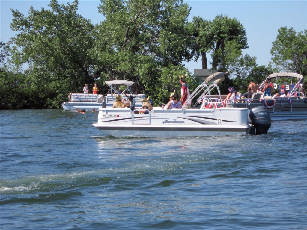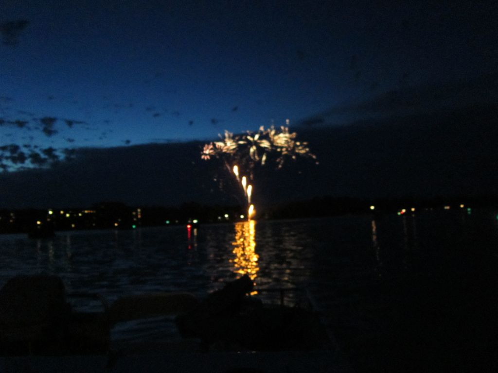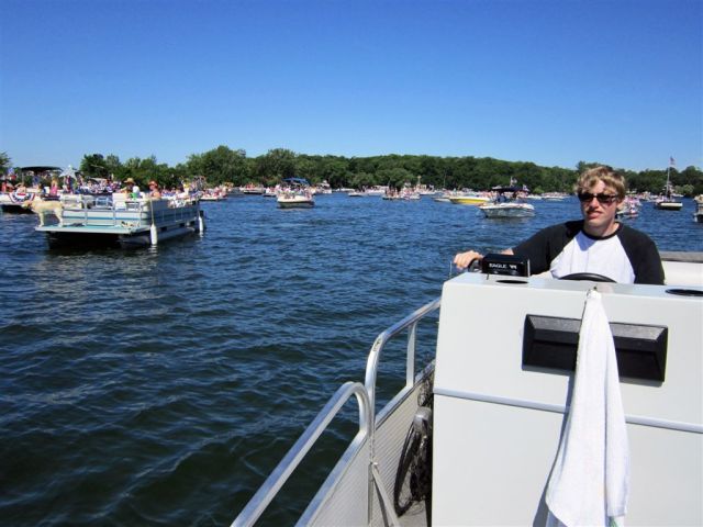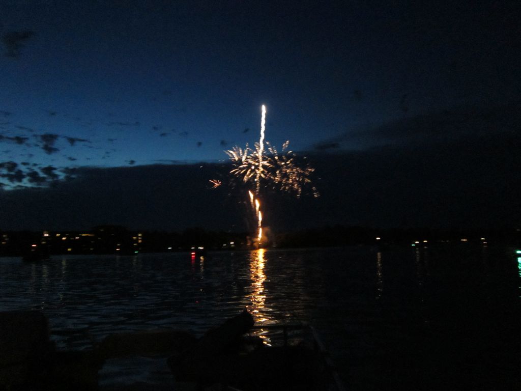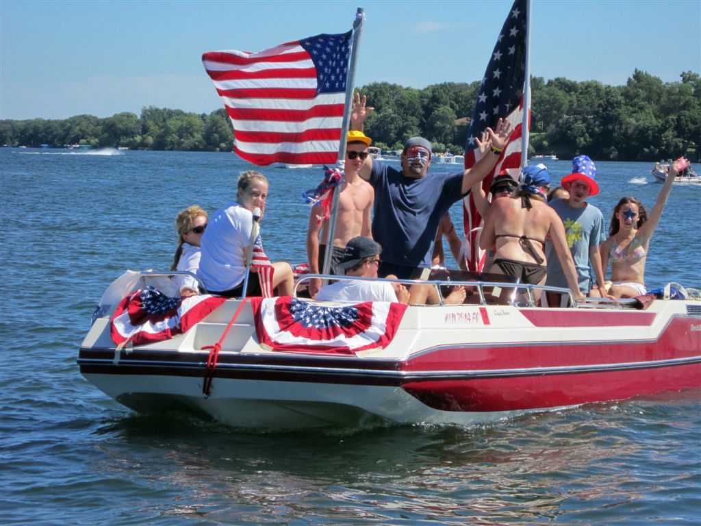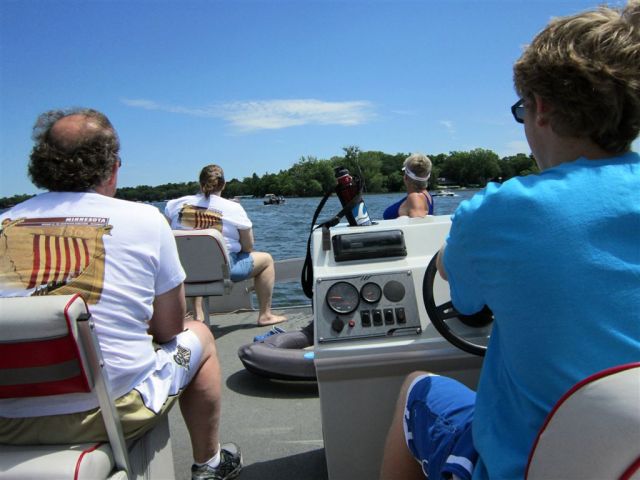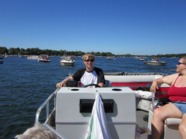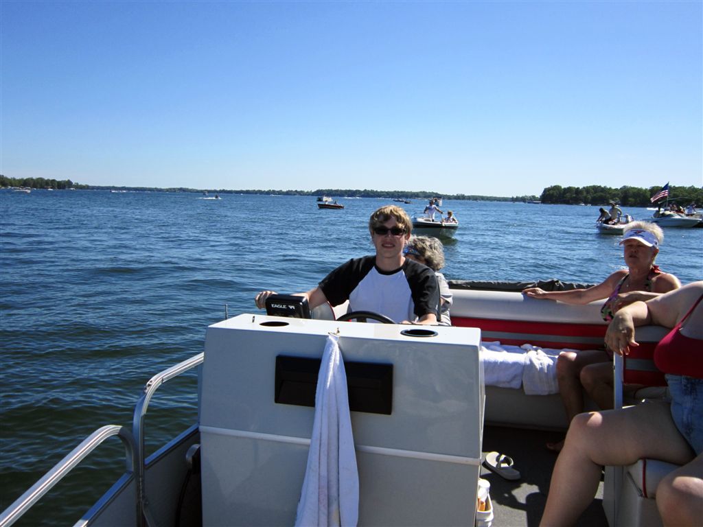 Morning excitement on the 4th begins and ends with the Lake Carlos boat parade. This annual event of unknown origin is believed to go back to the time of the Vikings – hence, the popularity in the area of the “Johnson” outboard motor. Anyway, it’s an opportunity for we usually stolid Scandinavians to blow off a little steam before we go out later that night to . . . blow off a little steam. For this trip, we were joined by grandson who was coerced by an offer that he could drive the boat.