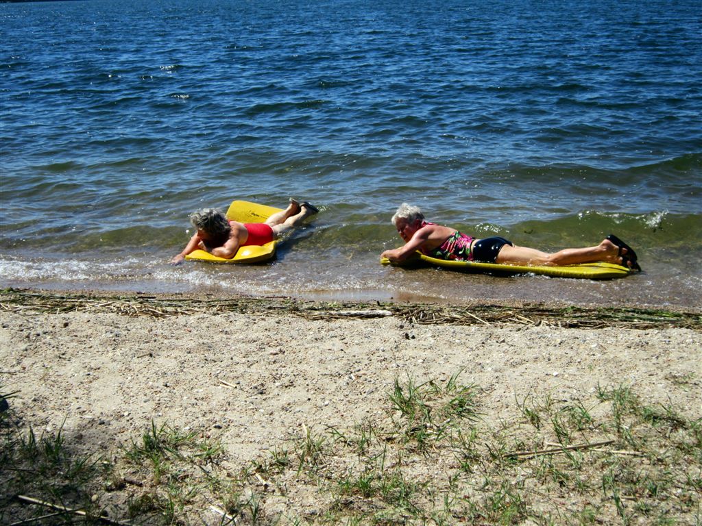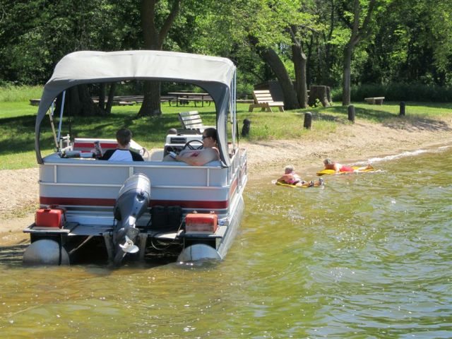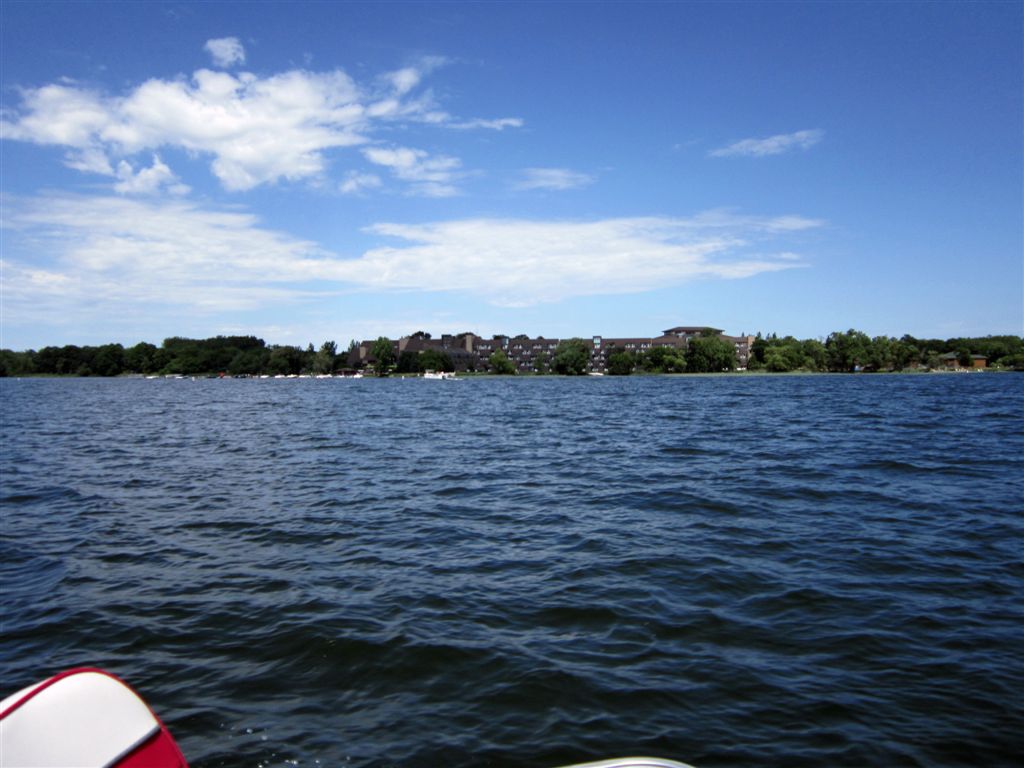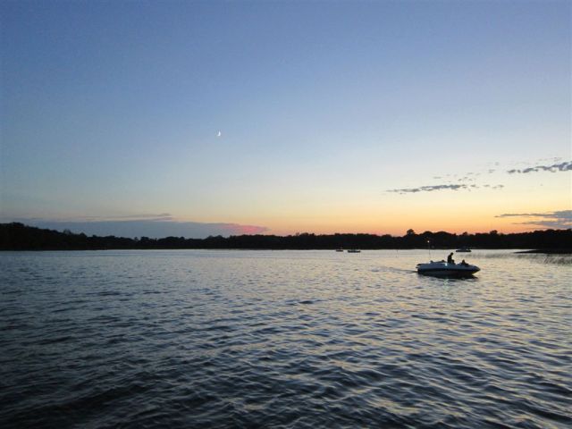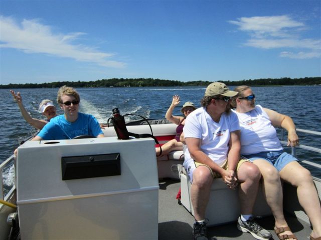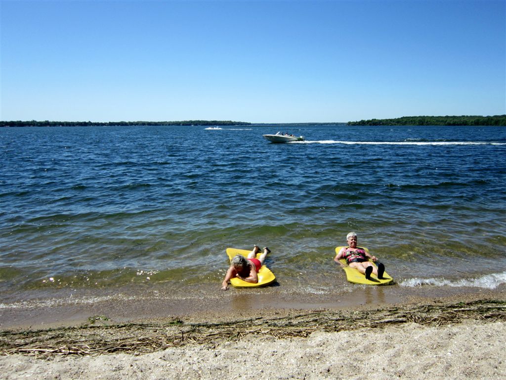 [The grandson piloted us around beautiful Lake Darling. The Biddies went for a swim – and both subsequently got a smidgeon of lake itch.]