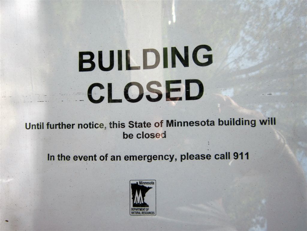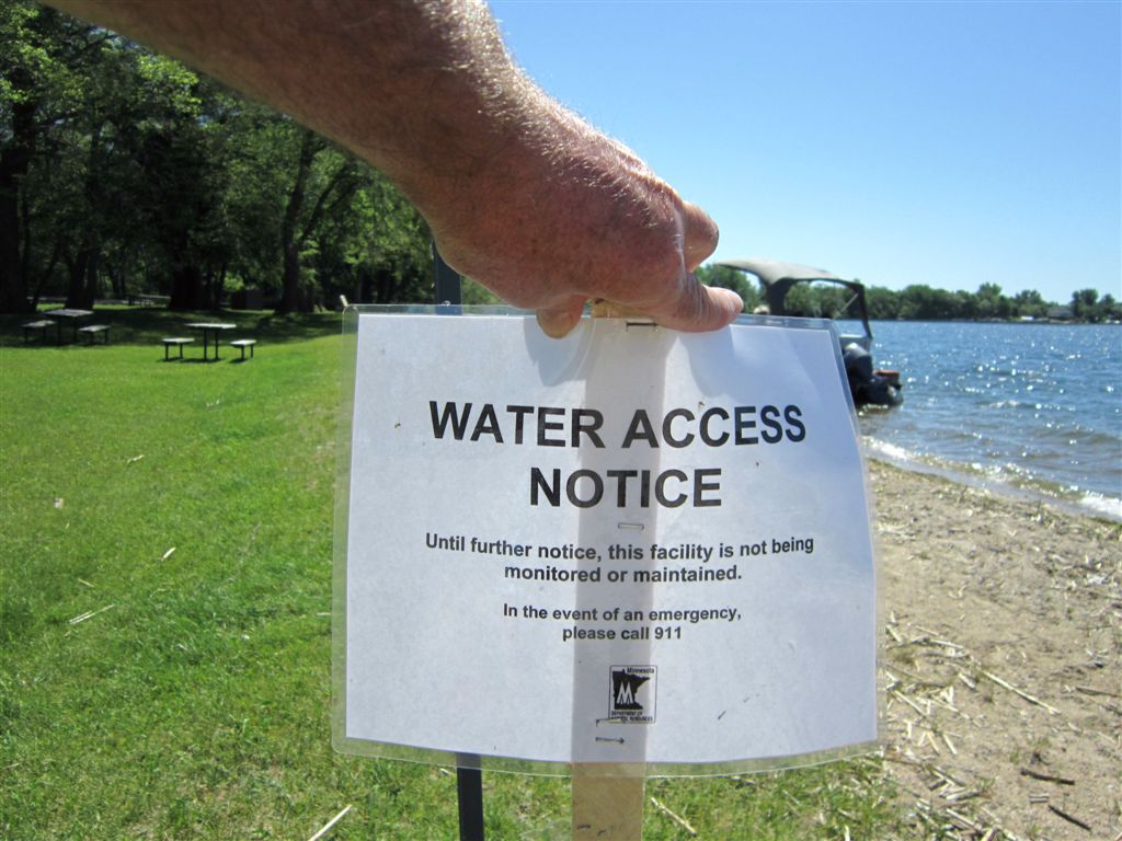 [Carlos State Park was closed, of course. The State of Minnesota is closed. Still, these are not the signs one wants to see when you have have been on the boat for two hours. But we had lunch there – and there was walk-in use of the beach.]