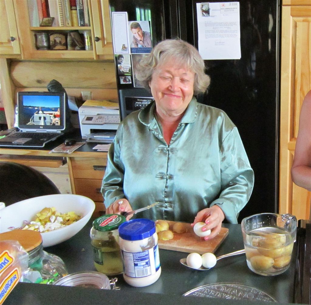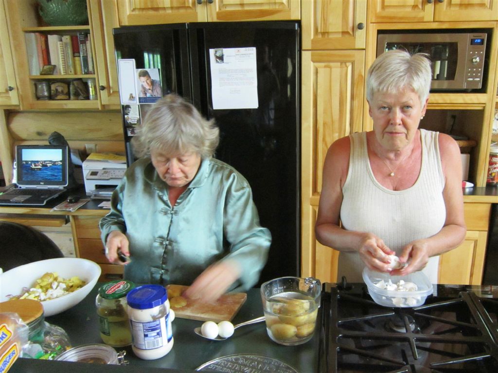 [When we returned from the wilds of northern Lake Carlos, The Biddies immediately commenced to chop. It’s what they do in lieu of therapy.]