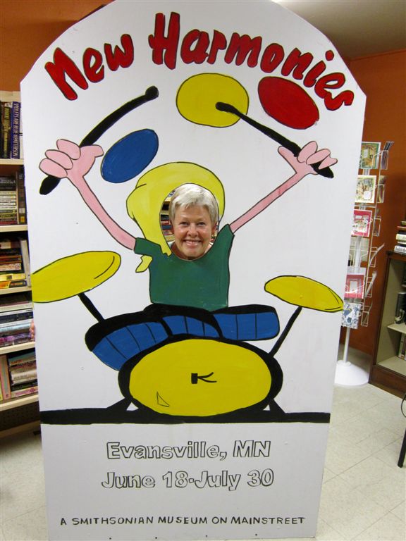 The day before they left, we all went on a road trip to . . . Fergus Falls (well, to the Prairie Center Learning Center, actually) – with stops along the way at the Quilt Shop in Garfield and the Evansville Art Center (the smallest member of the Smithsonian):